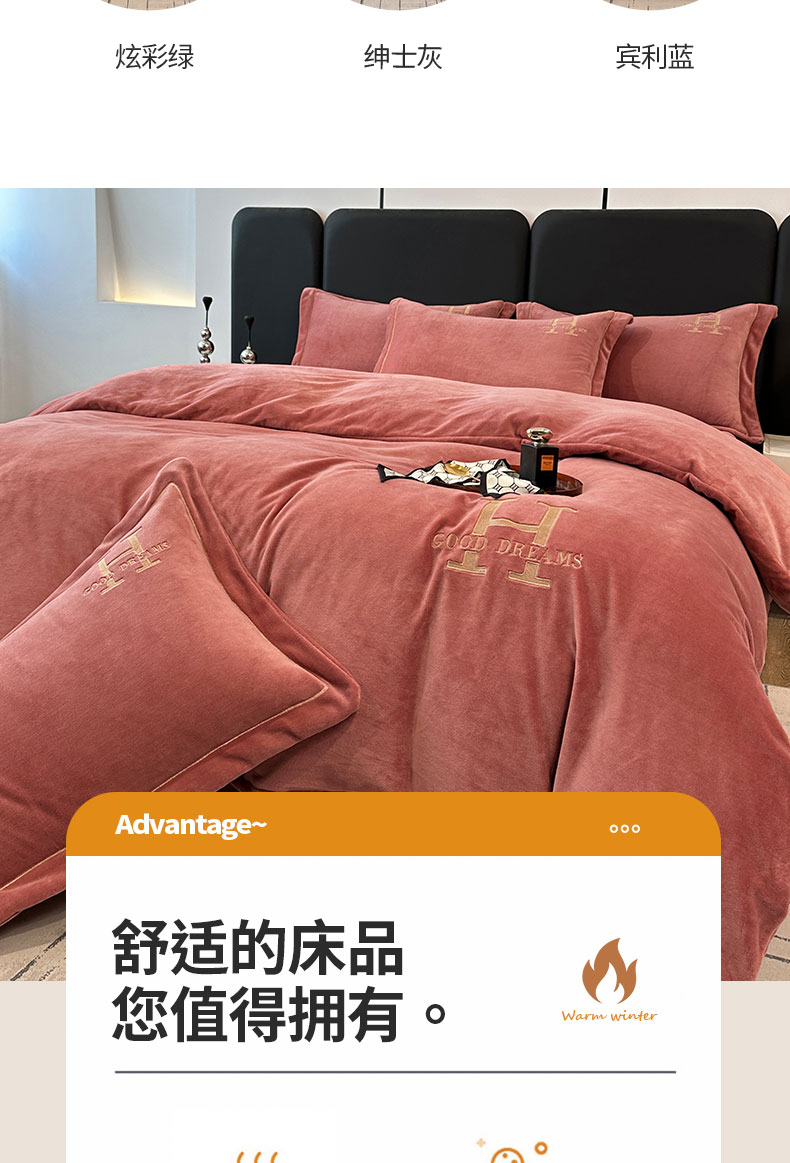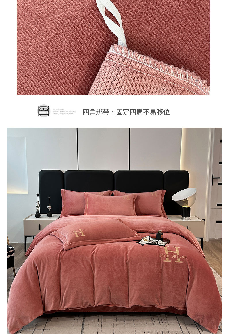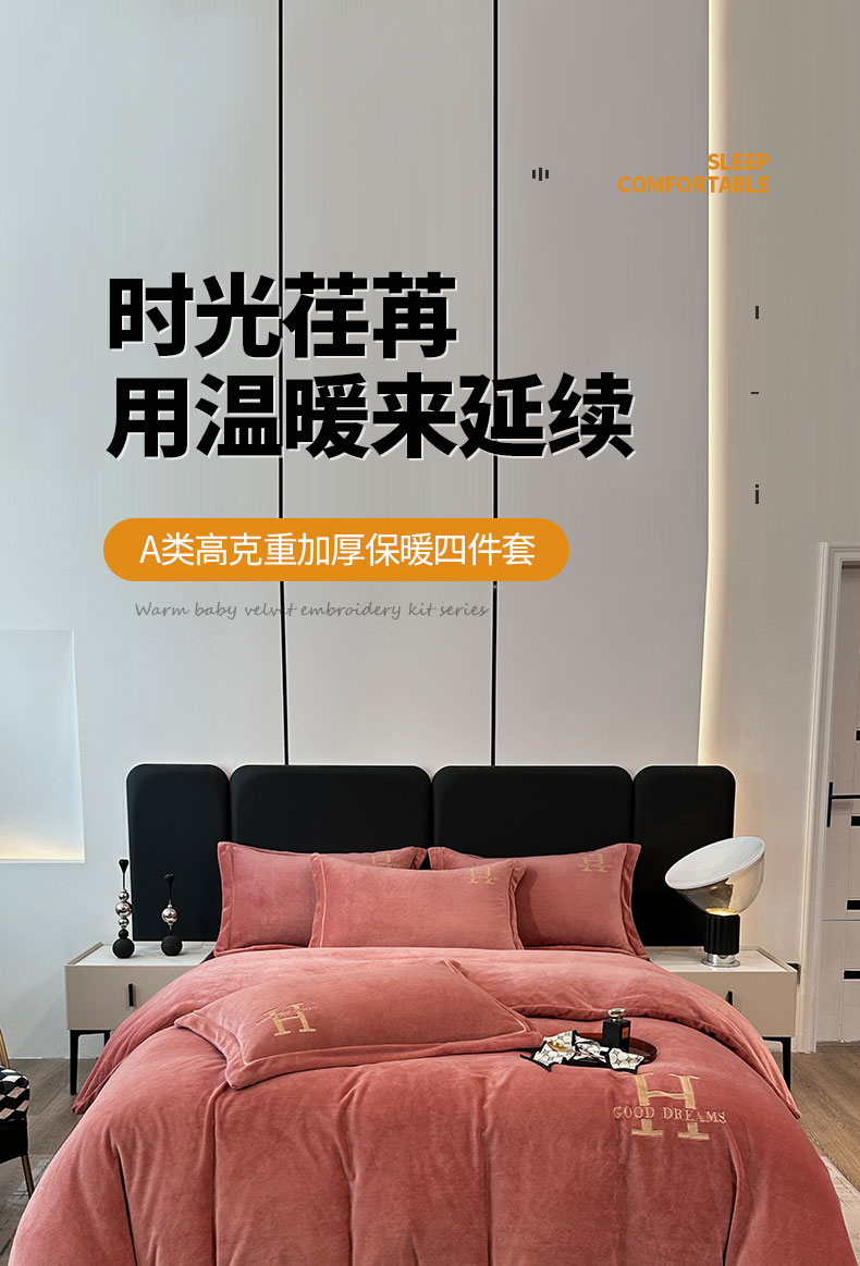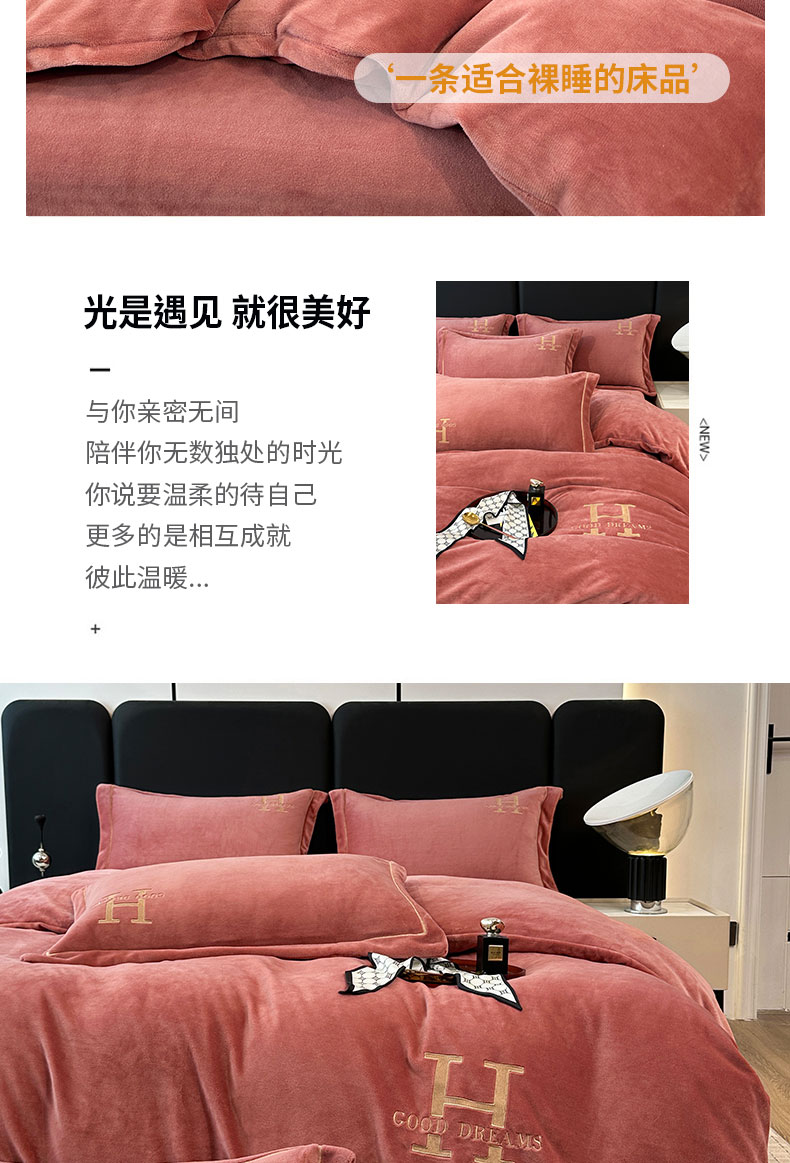 当前位置: 91家纺网 > 商品网购 > 床品套件 > 四件套 > 牛奶绒四件套 > 宇彬家纺 2025新款母婴级牛奶绒婴儿绒刺绣四件套 H-豆沙