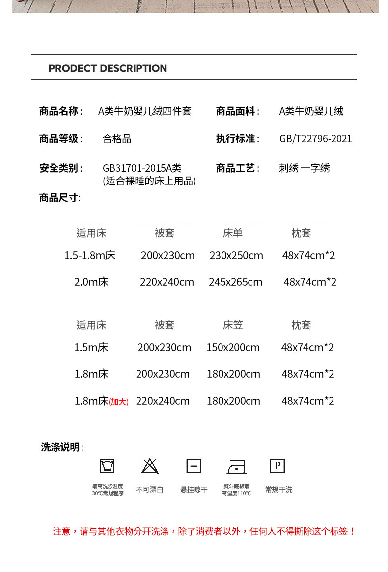 【床笠款】1.8四件套-被套200x230 | ¥110.00 |