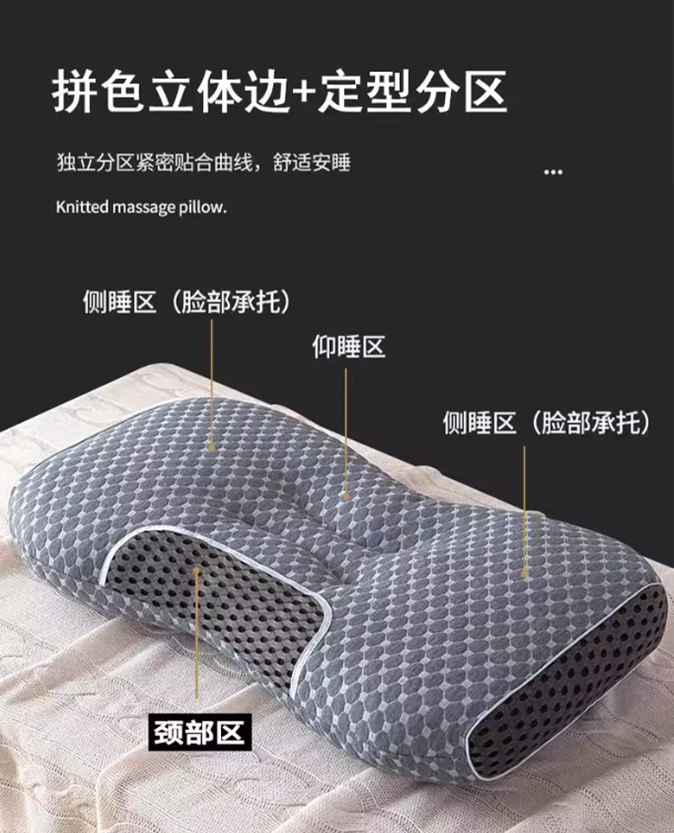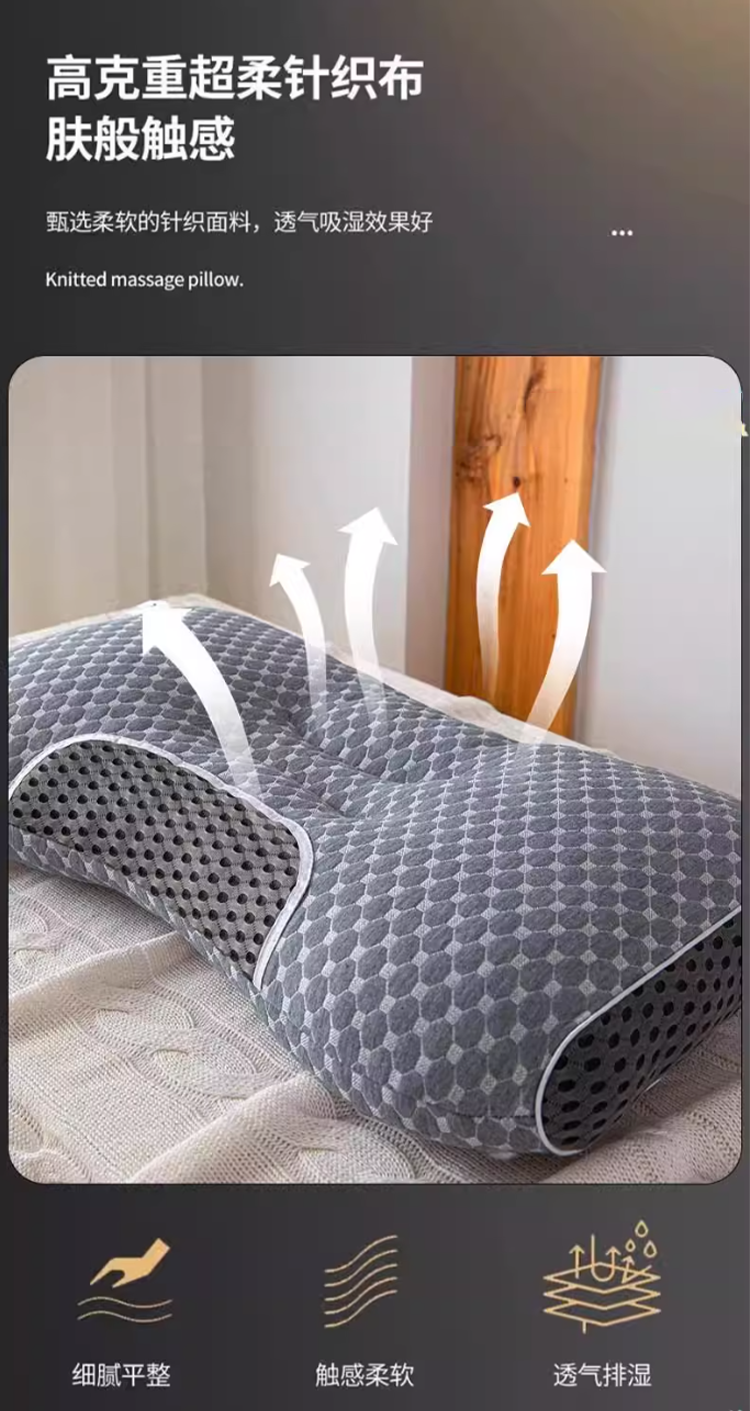 (总)煌朝家纺 2025新款3D睡感针织棉水立方磁石按摩枕头枕芯,水立方磁石按摩枕