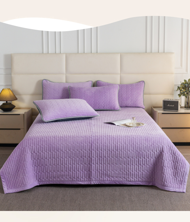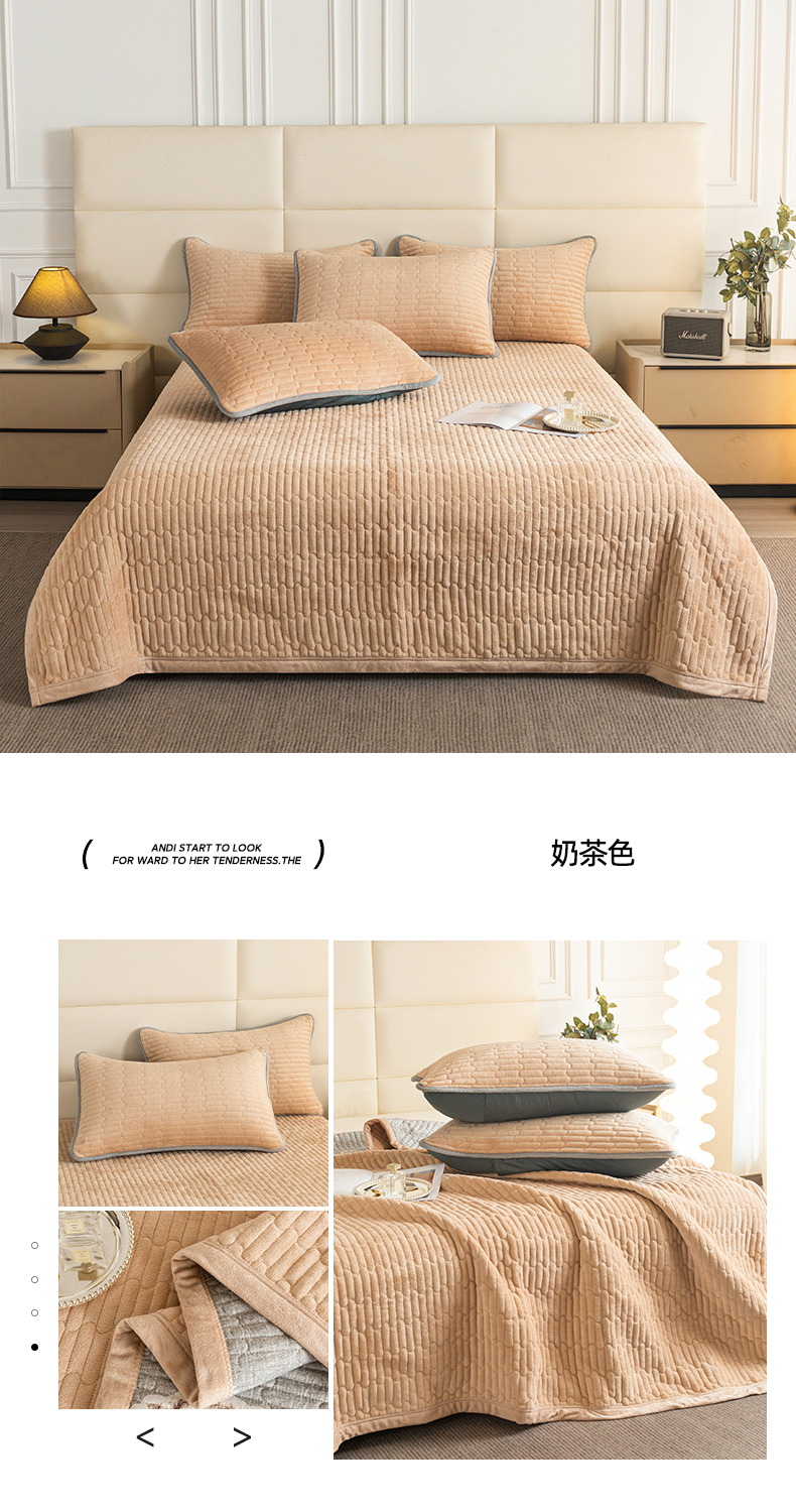 (总)梦莱家纺 2025新款牛奶绒花边单床盖三件套
