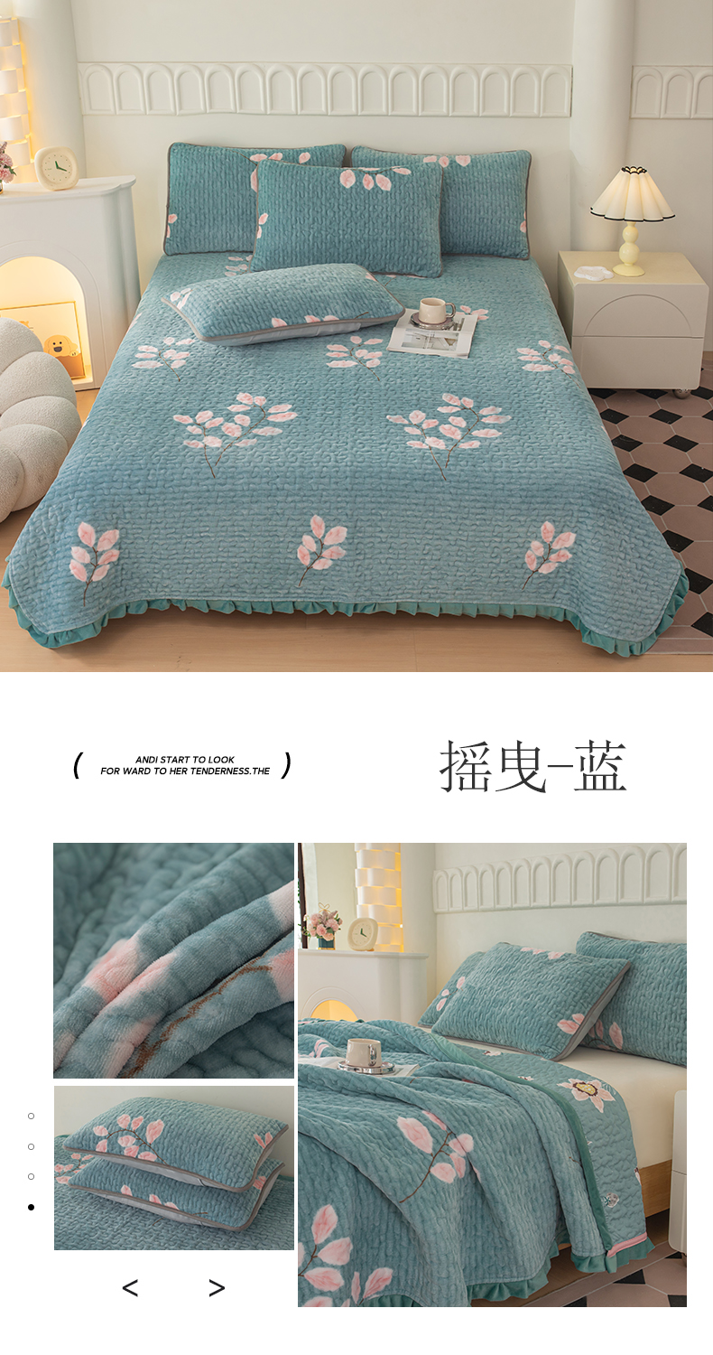 商品名称:(总)梦莱家纺 2025新款牛奶绒花边单床盖三件套