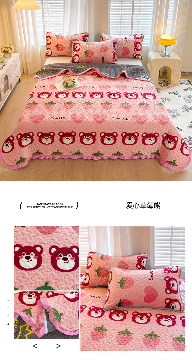 (总)梦莱家纺 2025新款牛奶绒花边单床盖三件套,爱心草莓熊,爱心点点,爱心熊,宝利格,波点熊,花漾玫瑰,花语,可爱南瓜-卡其,可爱南瓜-绿,可爱松鼠,可爱兔兔,库洛米,蓝白条纹格,萌兔乐园-粉,萌兔乐园-蓝,绵绵细语,奇趣南瓜,史努比,摇曳,优雅蝴蝶结,海盐蓝,海洋蓝,奶茶色,奶油紫,樱花粉,优雅灰,砖红色,潮牌熊-灰,潮牌熊-咖,蝶舞,滑板熊猫,可爱小兔,浪漫花语-粉,南瓜爱心,蔷薇花开,时尚熊,微笑熊,心意,摇曳-灰,摇曳-蓝