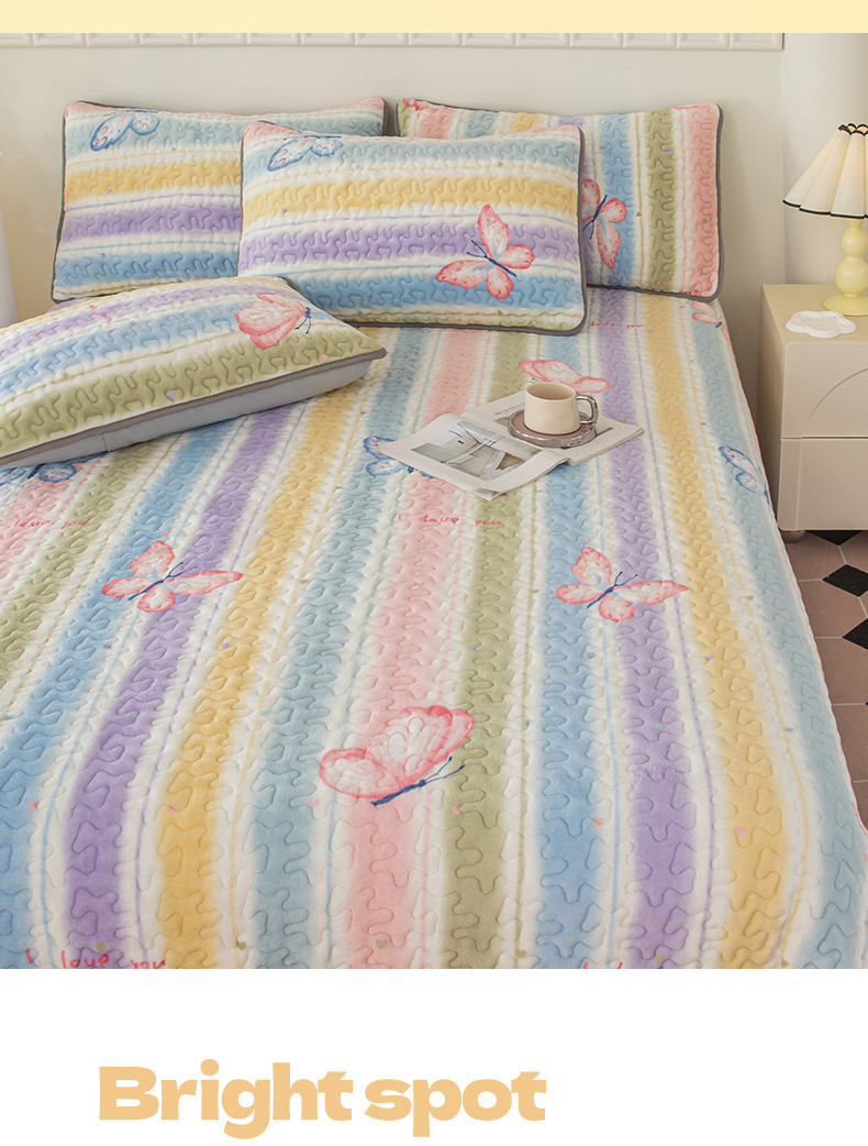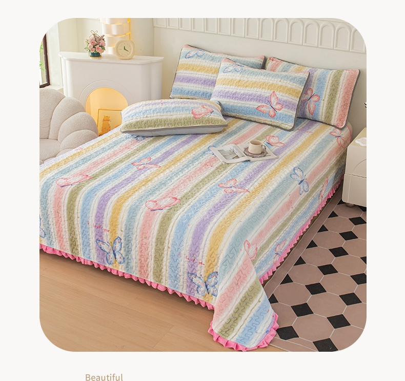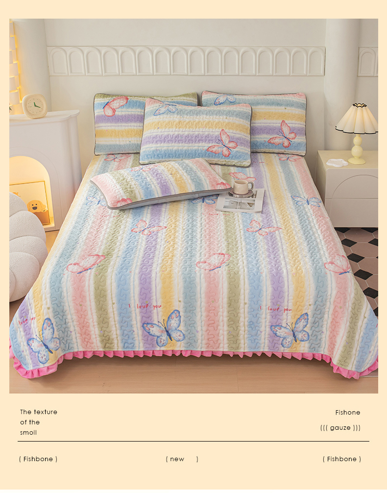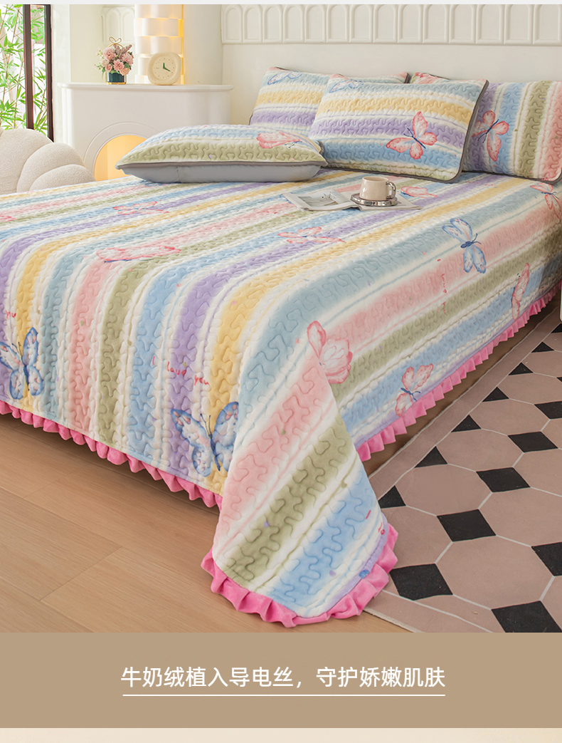 梦莱家纺 2025新款牛奶绒花边单床盖三件套 蝶舞