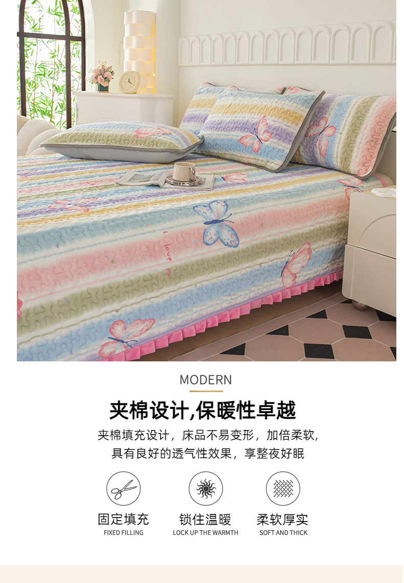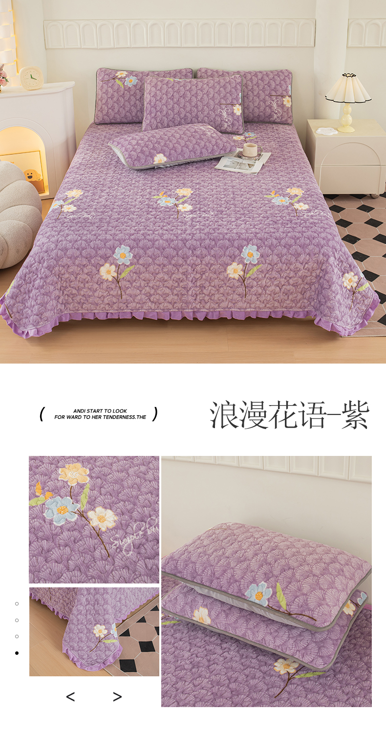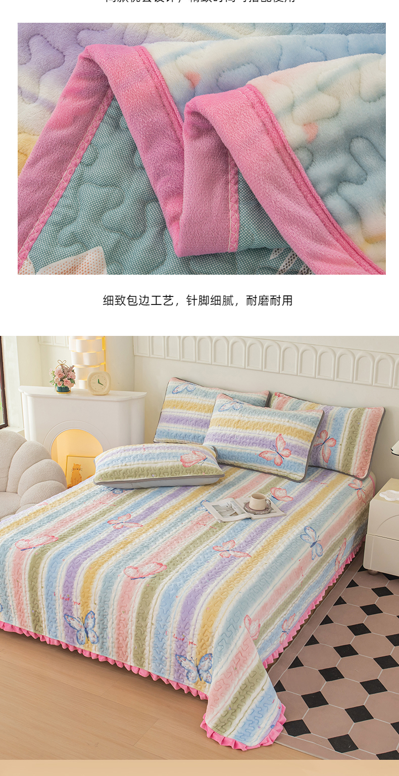 商品名称:梦莱家纺 2025新款牛奶绒花边单床盖三件套 蝶舞