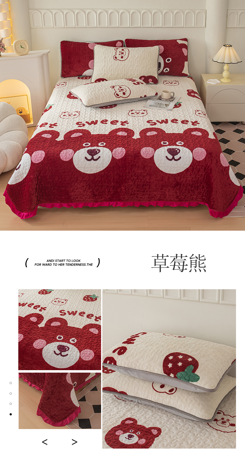 (总)梦莱家纺 2025新款牛奶绒花边单床盖三件套,爱心草莓熊,爱心点点,爱心熊,宝利格,波点熊,花漾玫瑰,花语,可爱南瓜-卡其,可爱南瓜-绿,可爱松鼠,可爱兔兔,库洛米,蓝白条纹格,萌兔乐园-粉,萌兔乐园-蓝,绵绵细语,奇趣南瓜,史努比,摇曳,优雅蝴蝶结,海盐蓝,海洋蓝,奶茶色,奶油紫,樱花粉,优雅灰,砖红色,潮牌熊-灰,潮牌熊-咖,蝶舞,滑板熊猫,可爱小兔,浪漫花语-粉,南瓜爱心,蔷薇花开,时尚熊,微笑熊,心意,摇曳-灰,摇曳-蓝