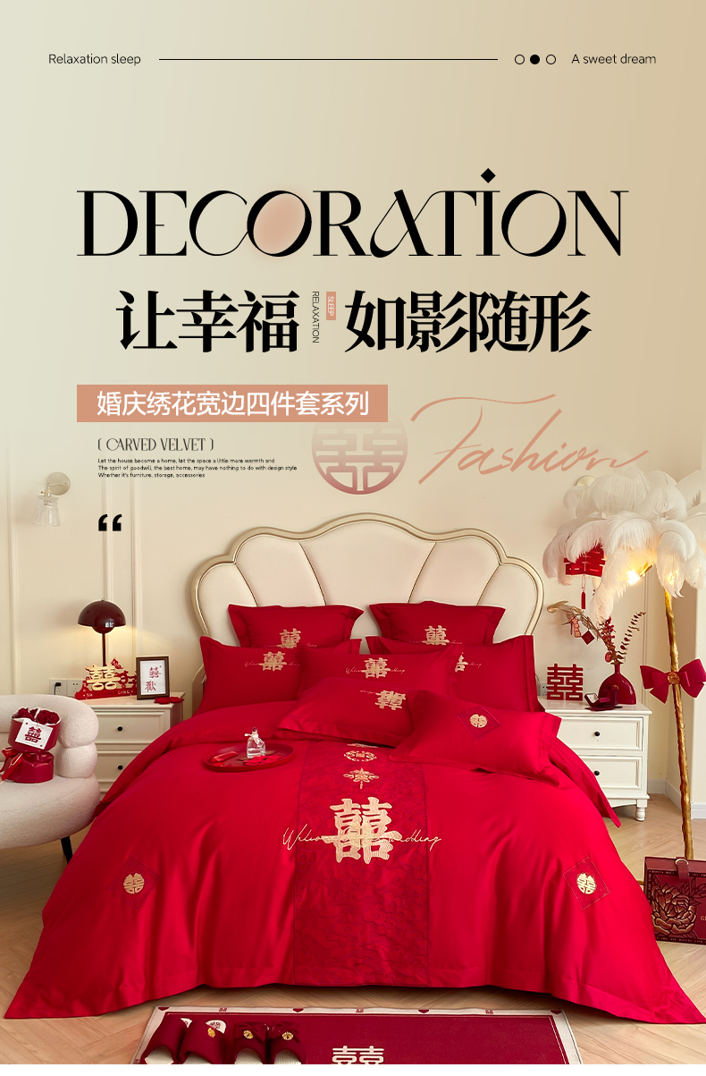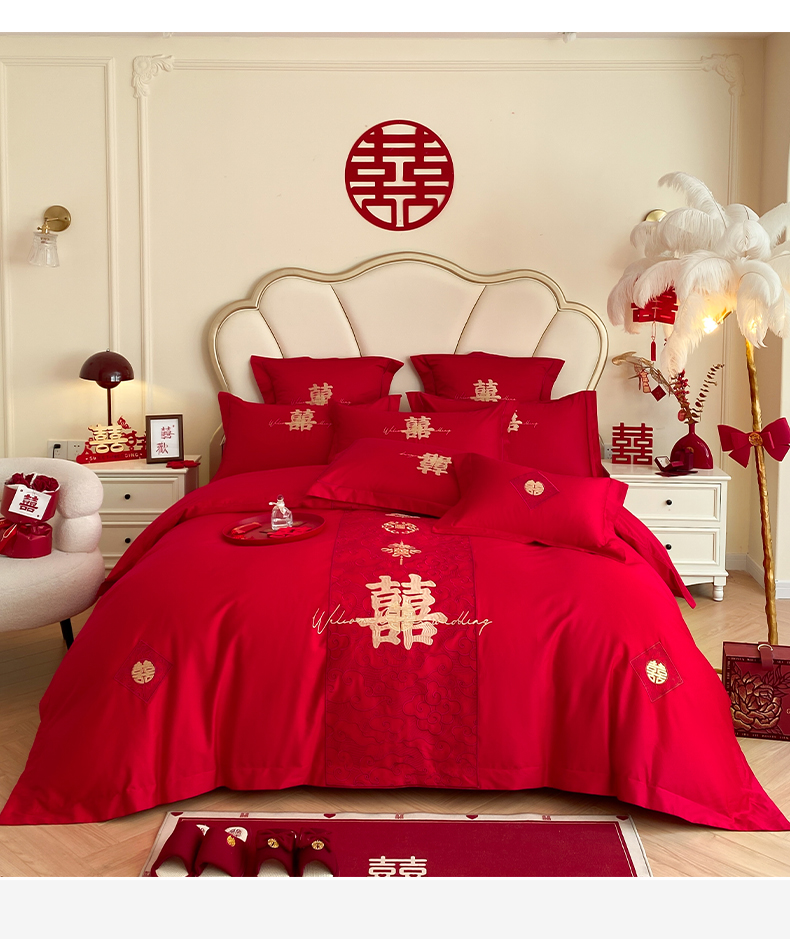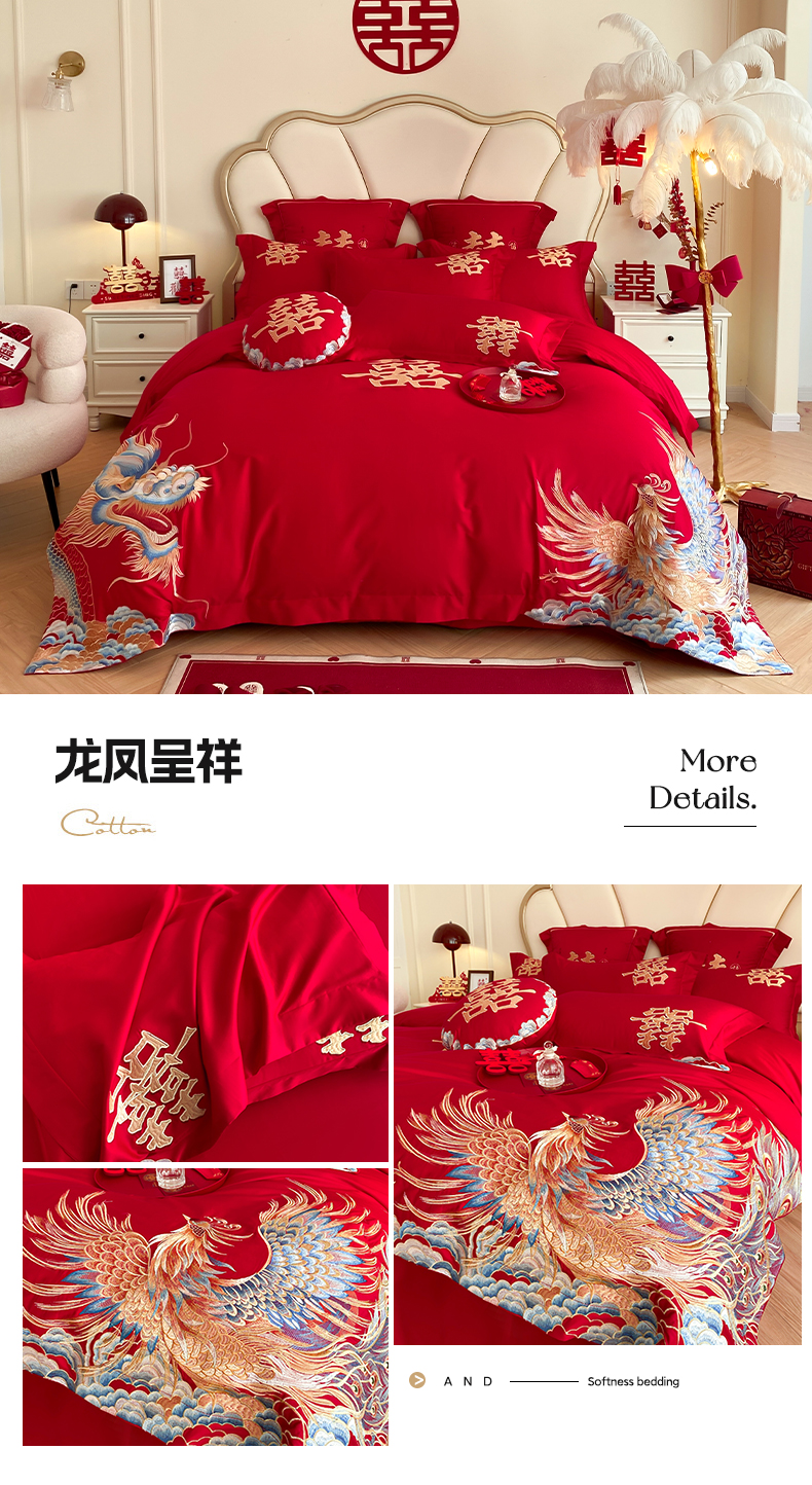 (总)博纳家纺 2025新款亲肤棉婚庆绣花款四件套,平安喜乐,百喜纳福,富贵传承,国色天香,欢天喜地,龙凤呈祥,龙凤大喜,玫瑰庄园,欧式风情,吾家大喜,喜爱,喜结连鲤,喜悦,一往情深