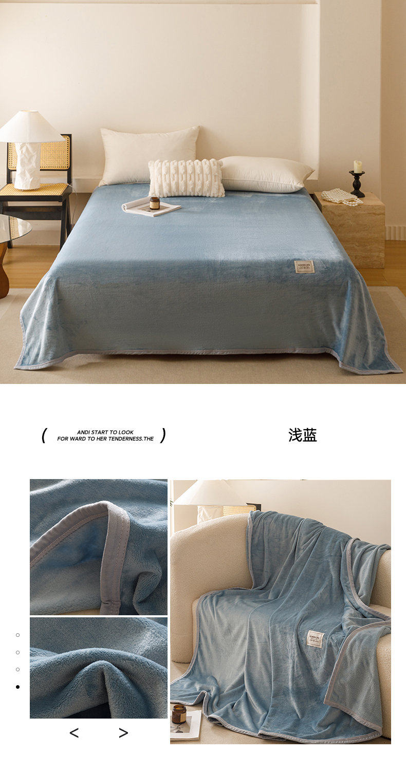 悦然毛巾被 2025新款300克印花牛奶绒盖毯休闲毯素色毛毯毯子 浅蓝
