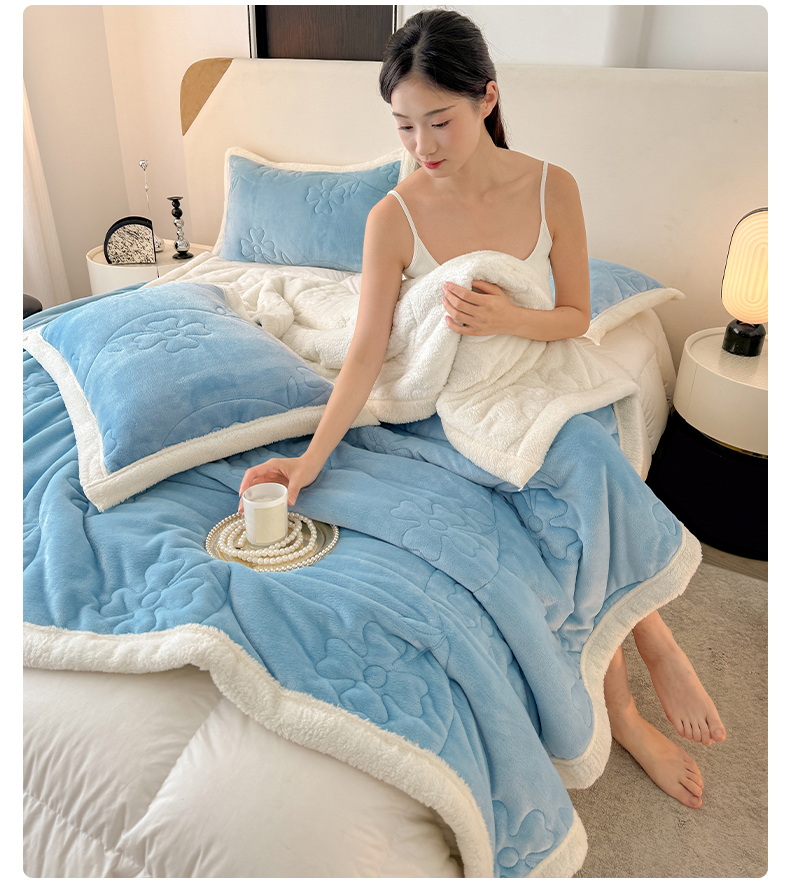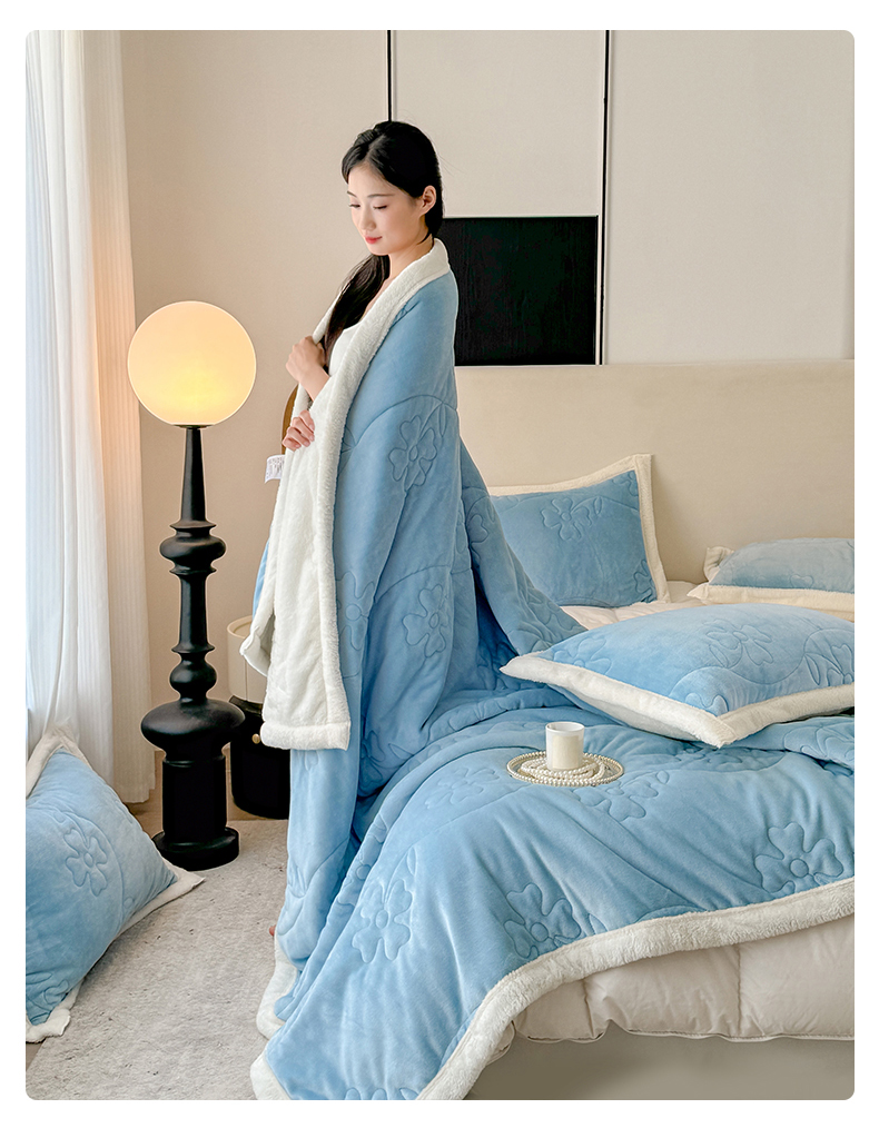 当前位置: 91家纺网 > 商品网购 > 毛毯休闲毯绒毯 > 毛毯 > 雅诗帛 2025新款A类加厚加绒婴儿绒北极绒羽丝棉三层夹棉盖毯 晴空蓝【双面绒夹棉】