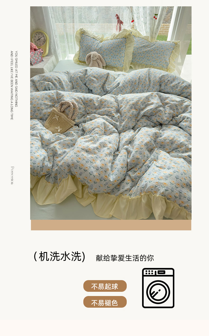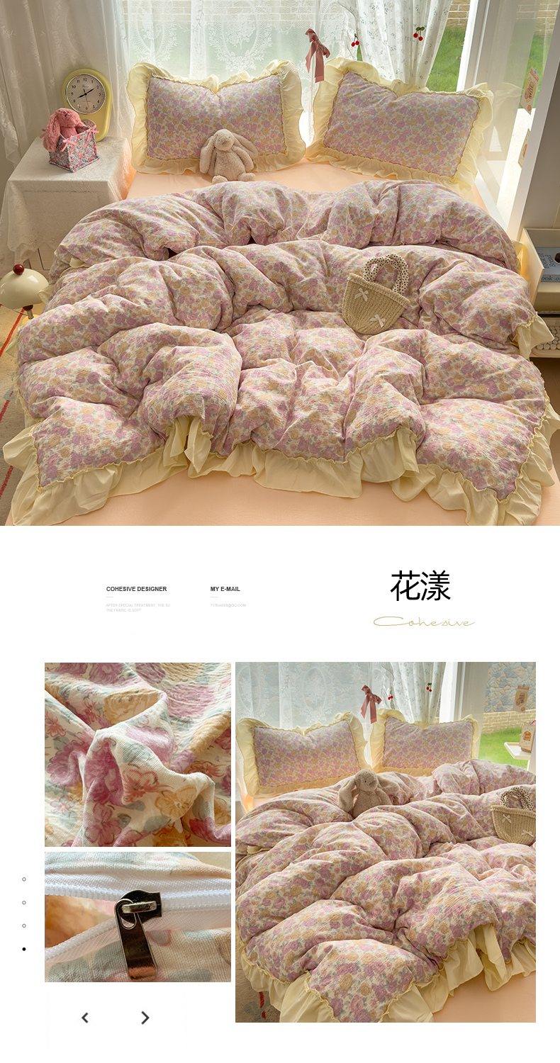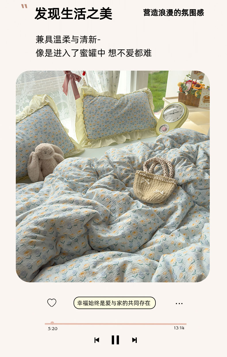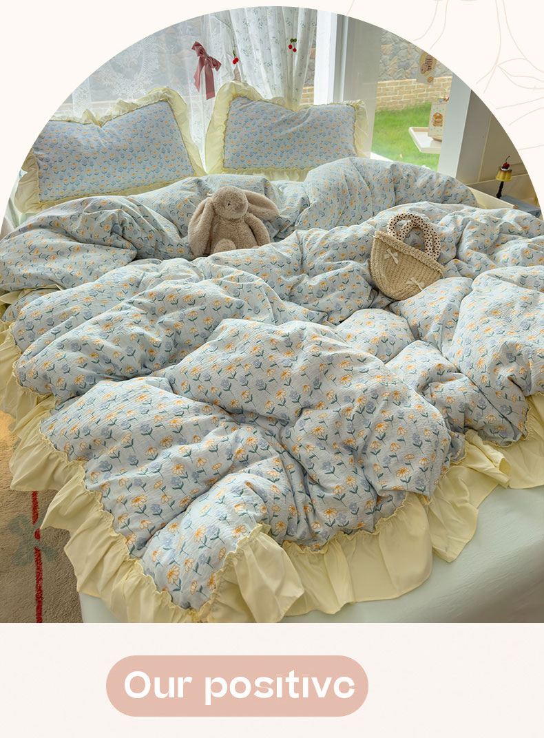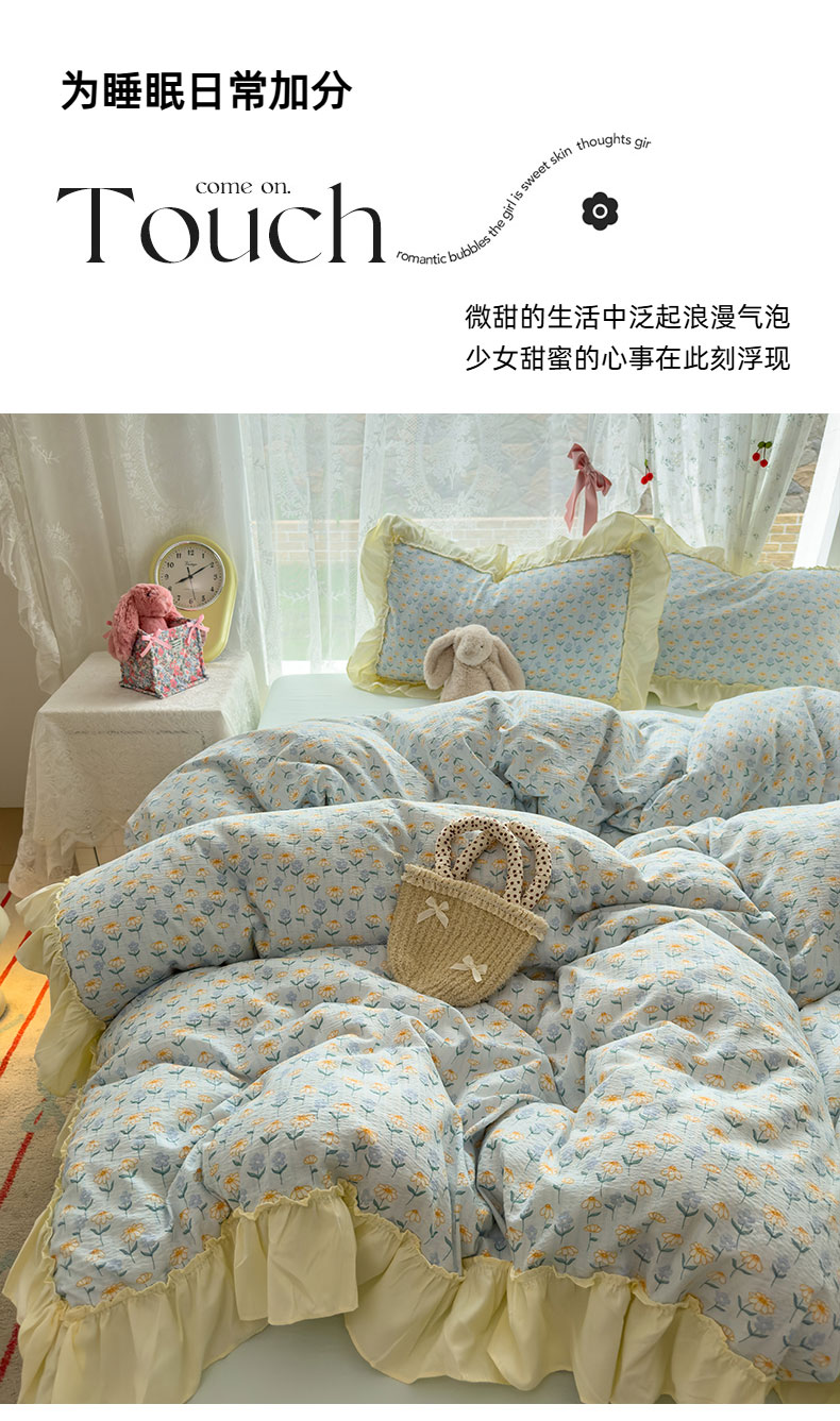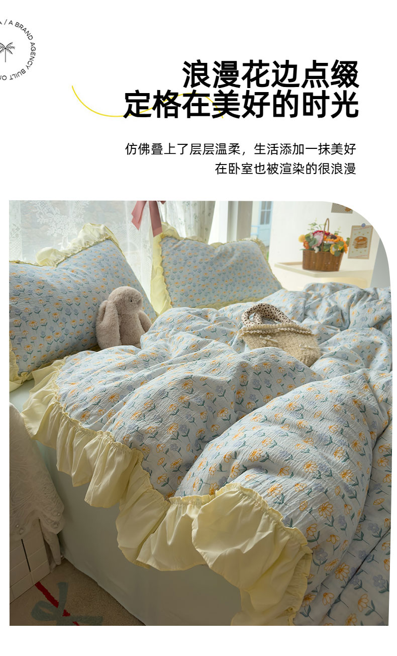 当前位置: 91家纺网 > 商品网购 > 床品套件 > 四件套 > 双层纱四件套 > 思诺羽床笠 2025新款开学季法式花边A类双层纱木棉四件套 小雏菊