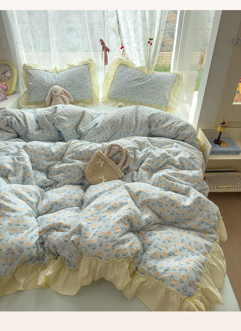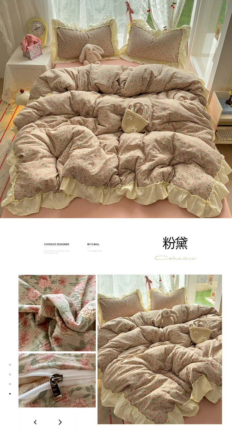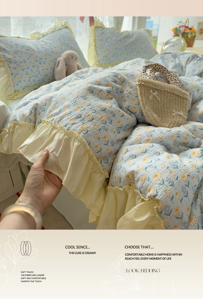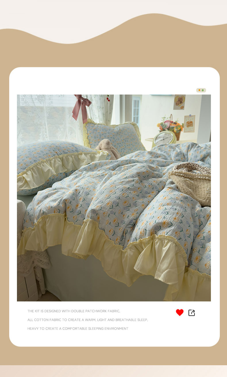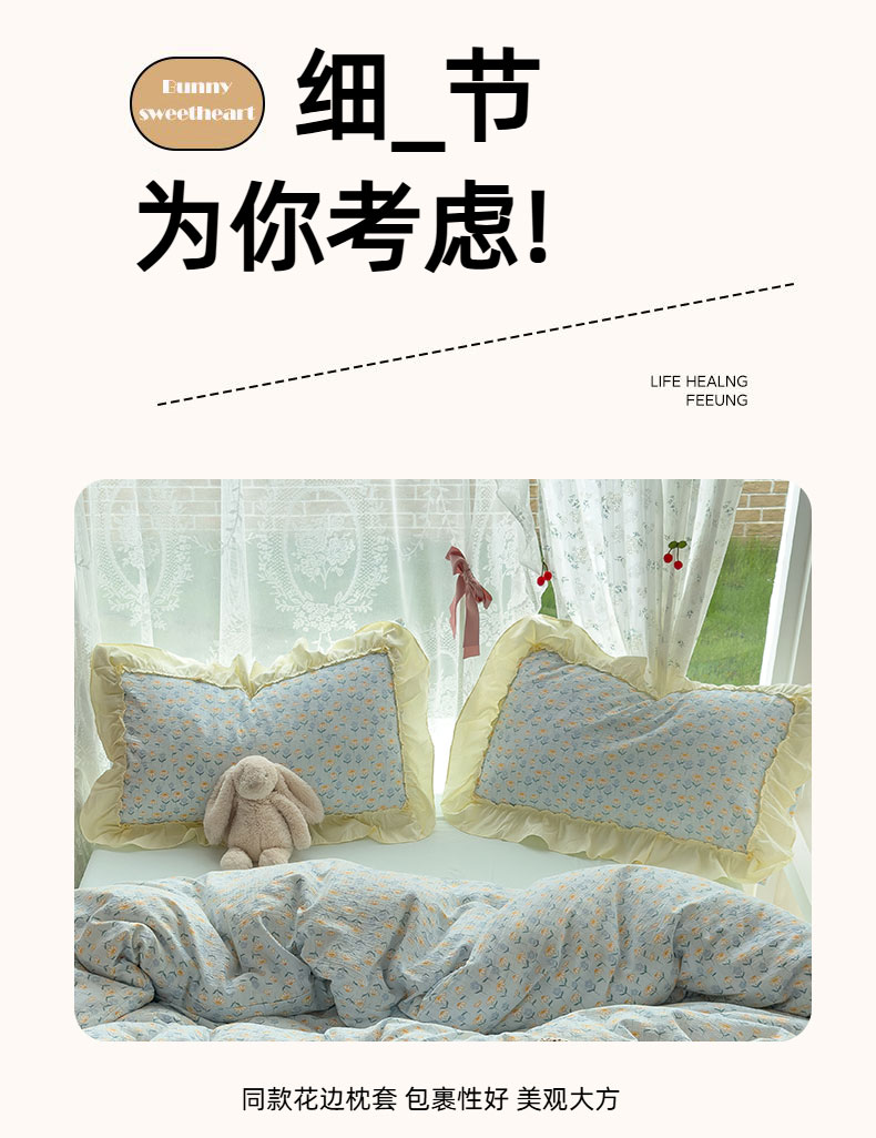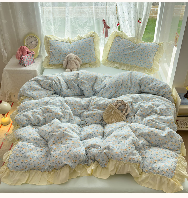 当前位置: 91家纺网 > 商品网购 > 床品套件 > 四件套 > 双层纱四件套 > 思诺羽床笠 2025新款开学季法式花边A类双层纱木棉四件套 小雏菊