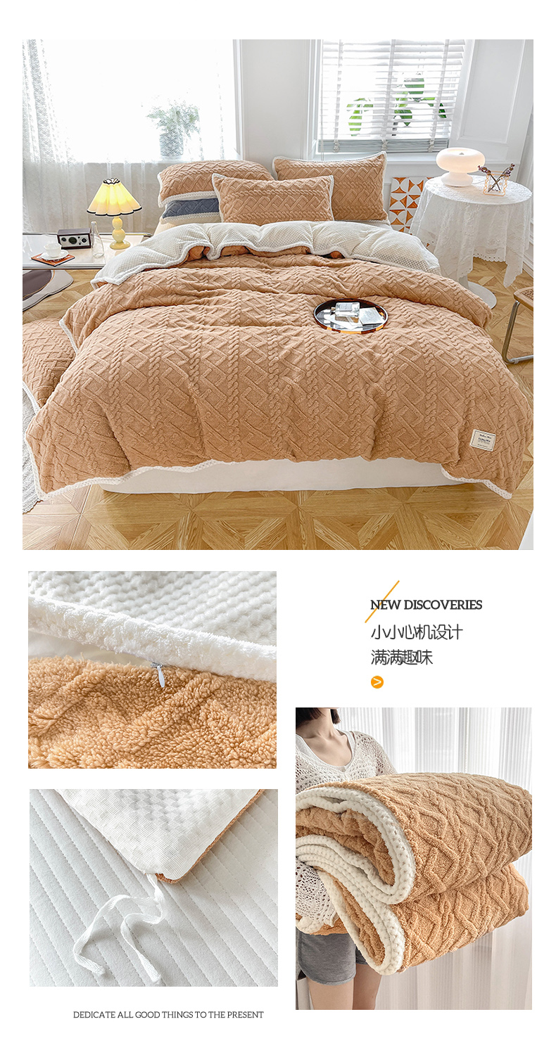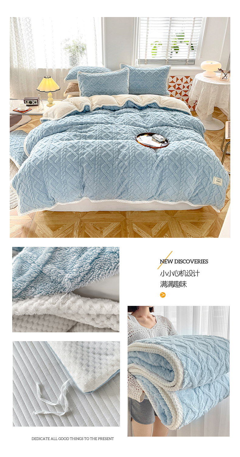 商品名称:雅诗帛 冬季加绒四件套云朵绒法莱绒牛奶绒雕花绒水晶绒塔芙绒毛毯学生宿舍保暖加绒加厚珊瑚绒双面绒 芋紫