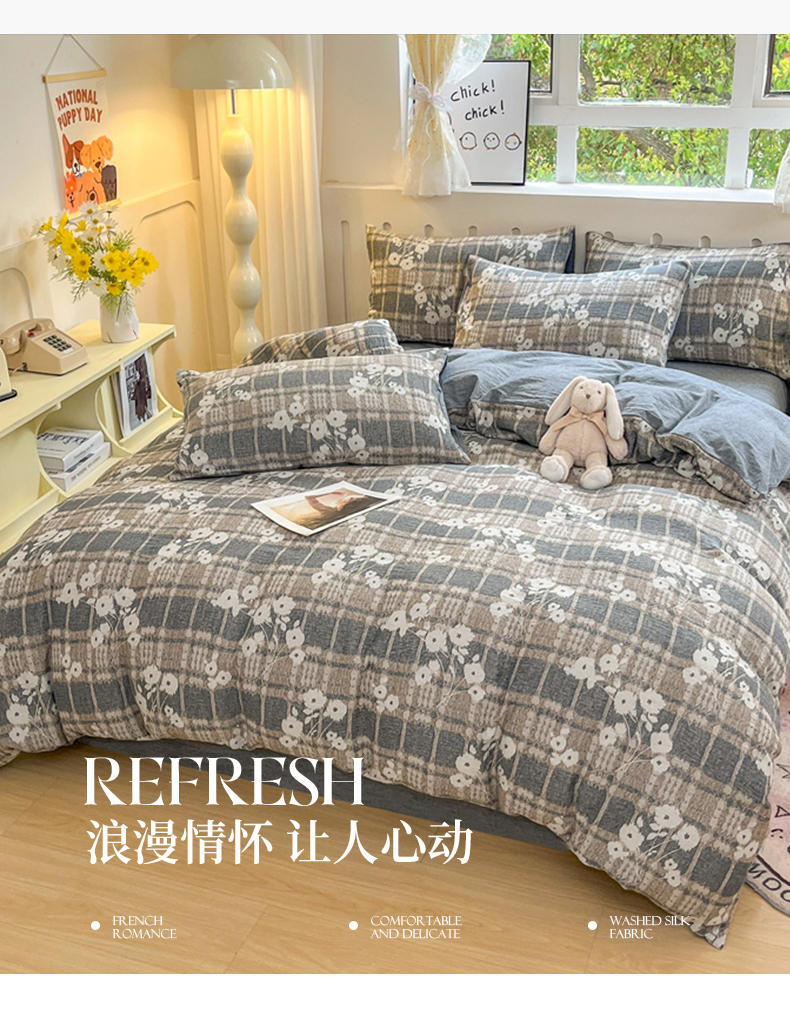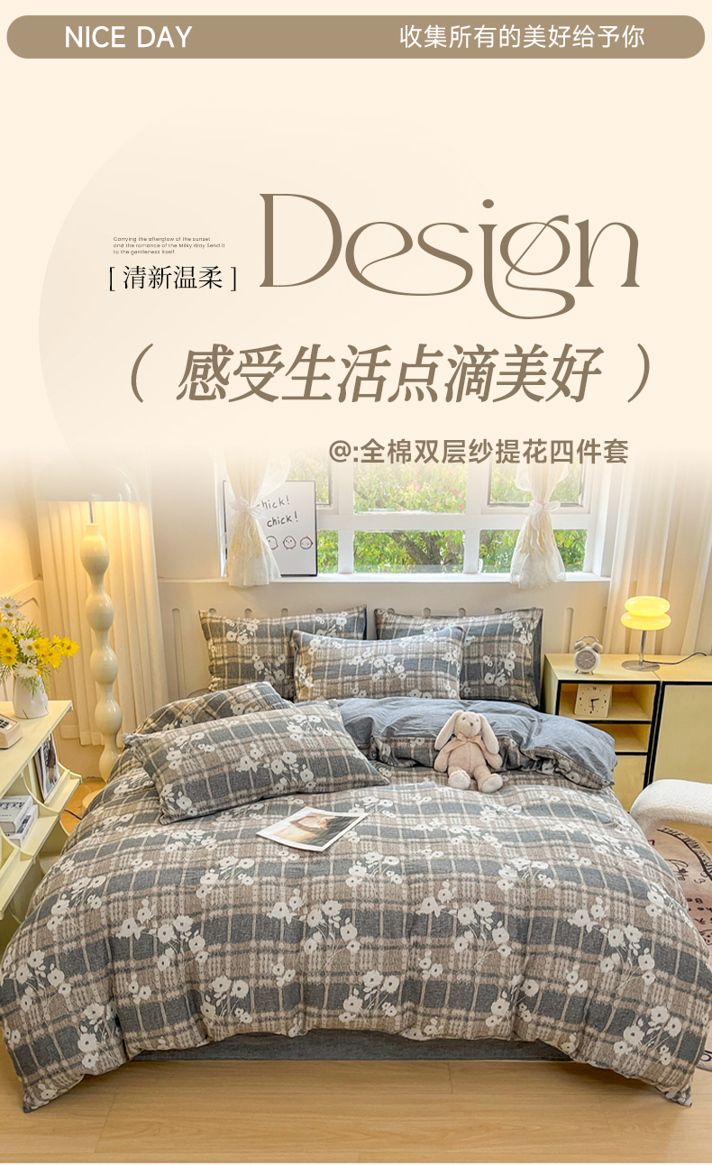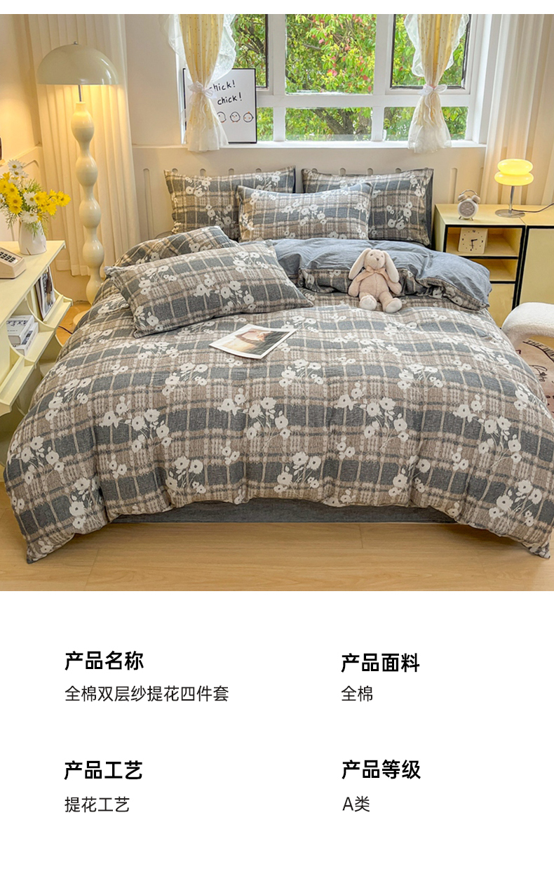 当前位置: 91家纺网 > 商品网购 > 床品套件 > 四件套 > 全棉普通四件套 > 菡宝 2025新款全棉纯棉色织双层纱提花四件套支持定制定做尺寸 埃利瑟-丈青
