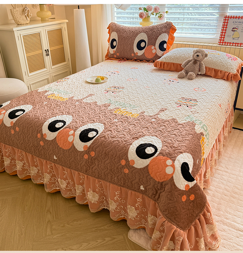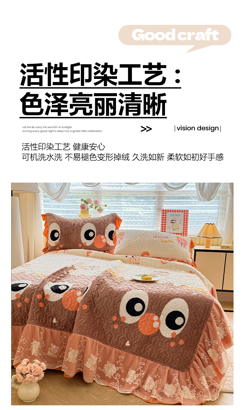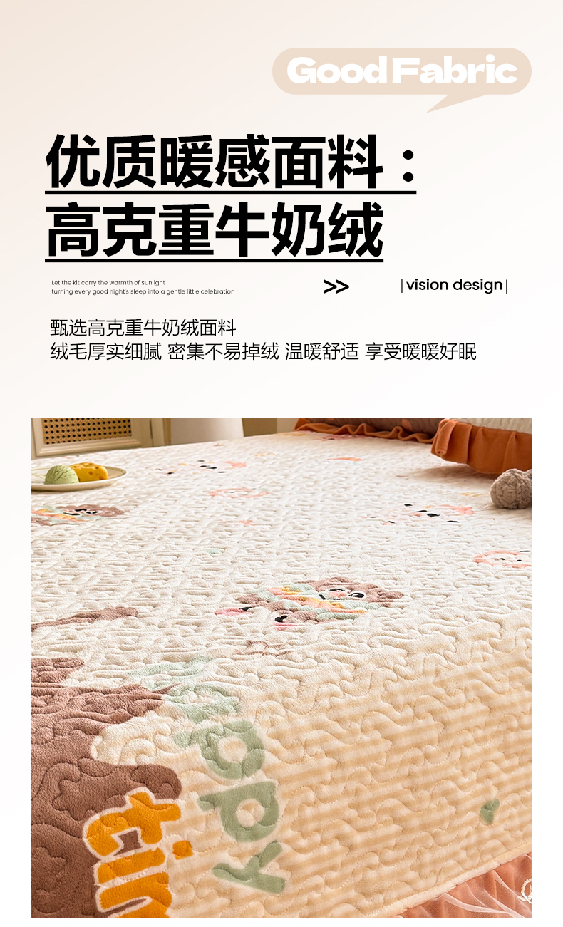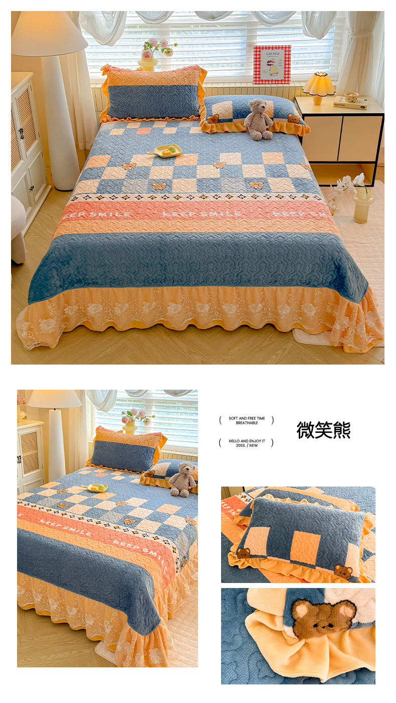 (总)美达家纺 2025新款高克重牛奶绒花边款夹棉床盖三件套,巴拉巴拉,格子萌熊,恐龙星球,梦蝶,时来运转,甜蜜奶吧,微笑熊,针织熊