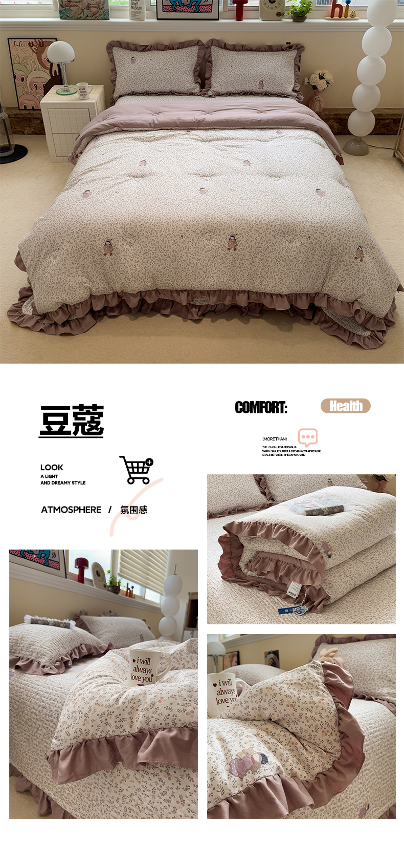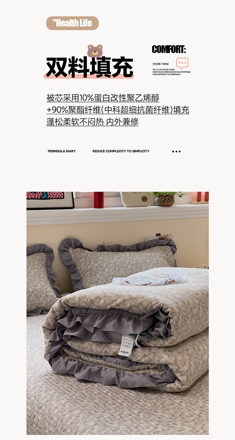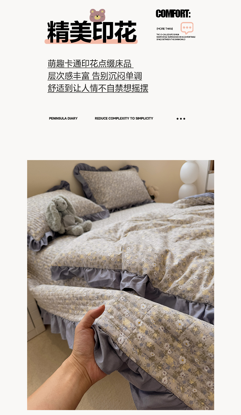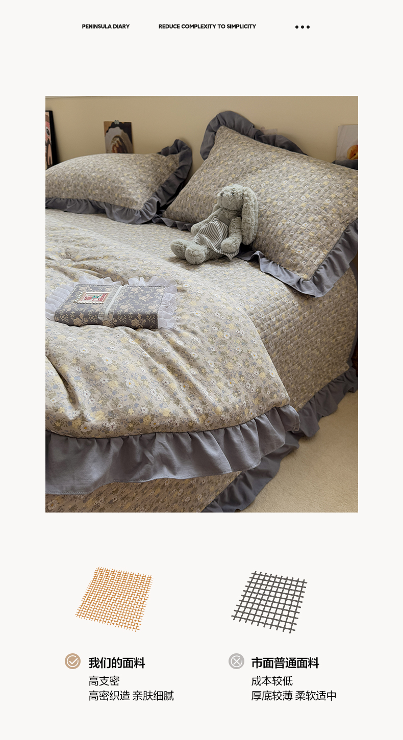 • 91家纺网 家纺一手货源 找家纺 一加一 2025新款小清新花边款大豆被床盖系列 秋日记忆