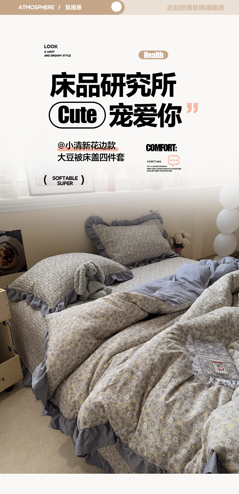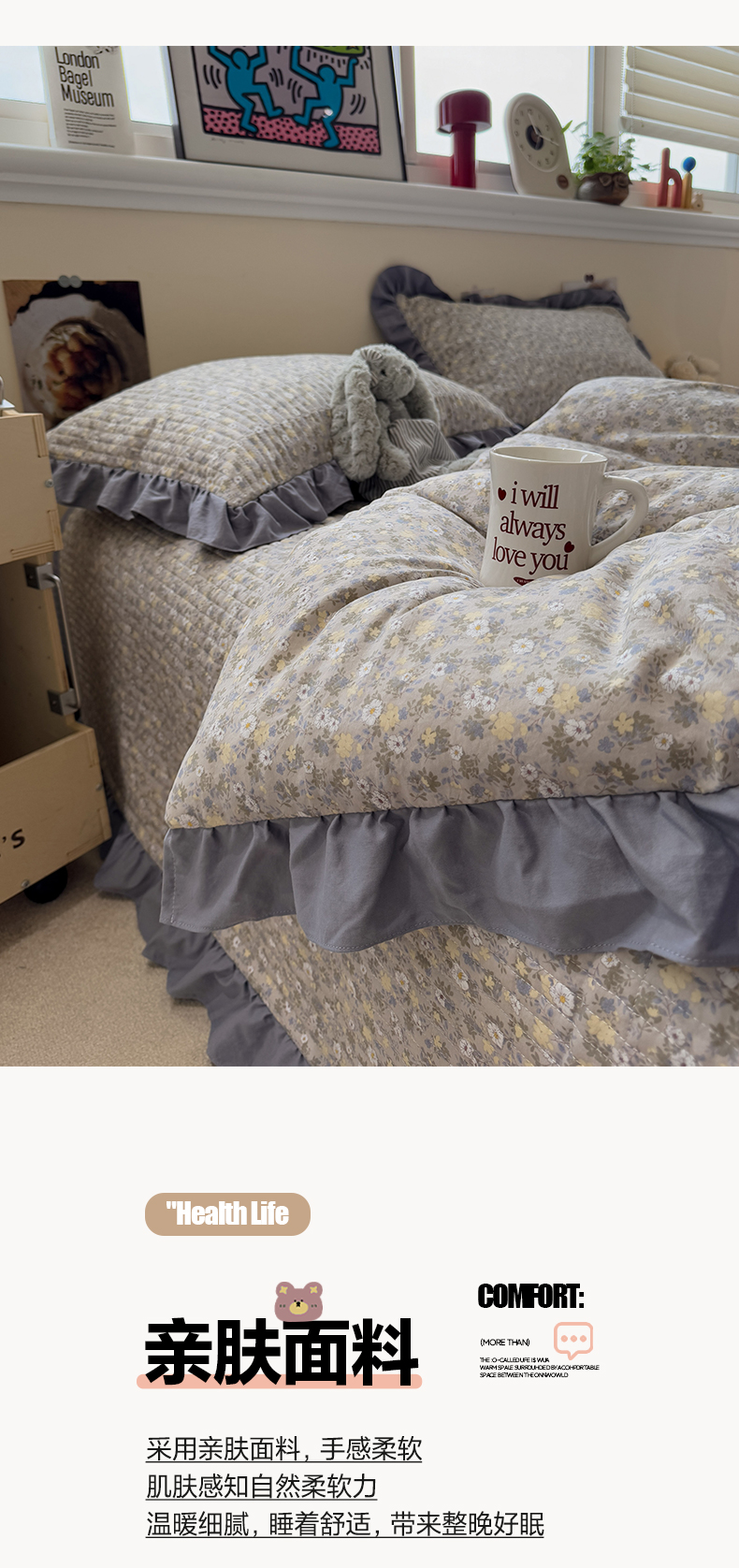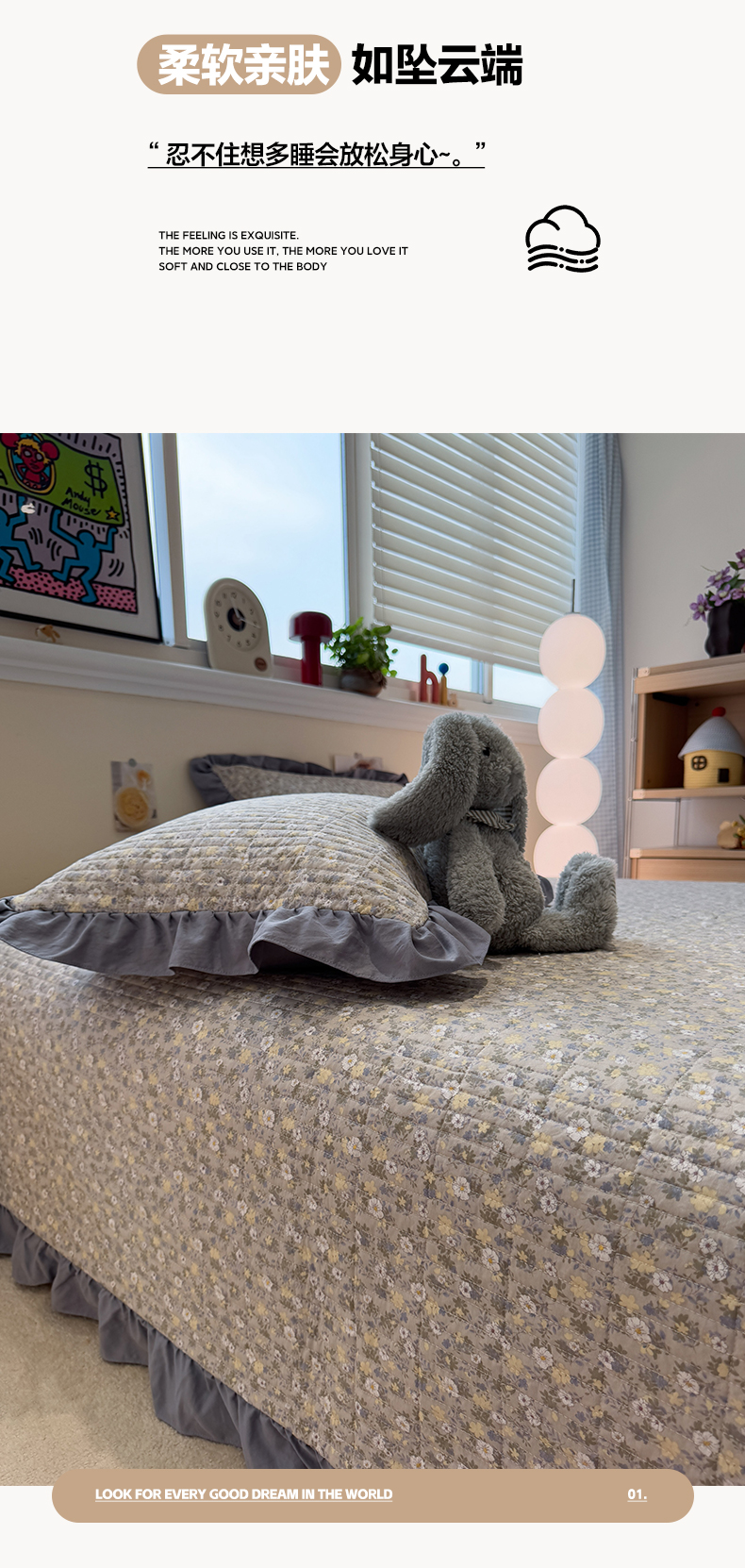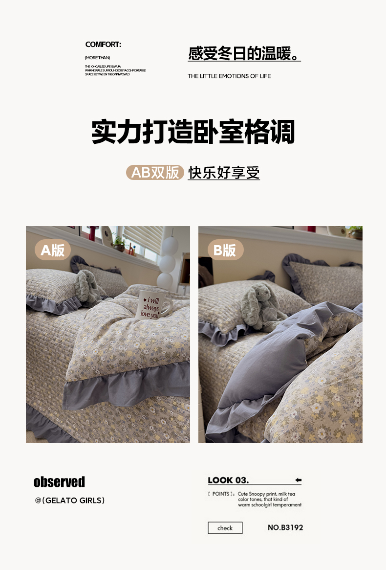 • 91家纺网 家纺一手货源 找家纺 一加一 2025新款小清新花边款大豆被床盖系列 秋日记忆