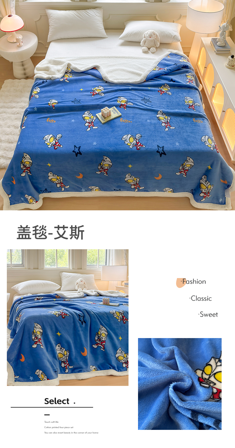 名兮家居 2025秋冬正版授权经典奥特曼高克重牛奶绒羊羔绒多功能盖毯【含防伪标】 盖毯-星星大耳狗