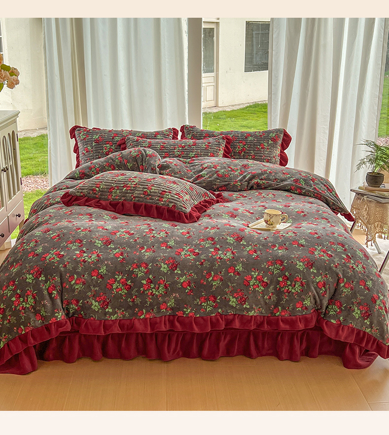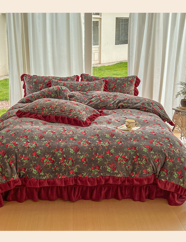 美梦家纺 2025新款花边牛奶绒床盖四件套 玫瑰的故事