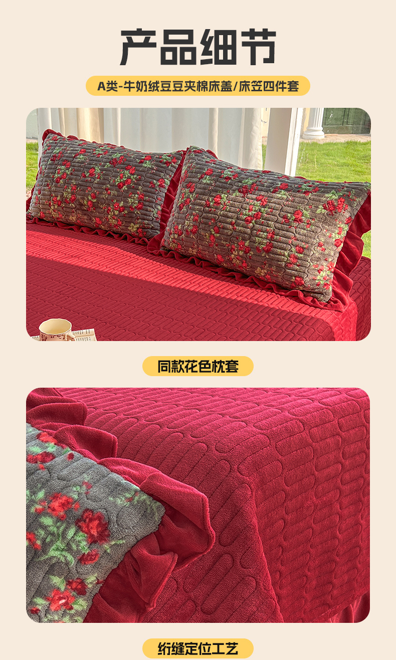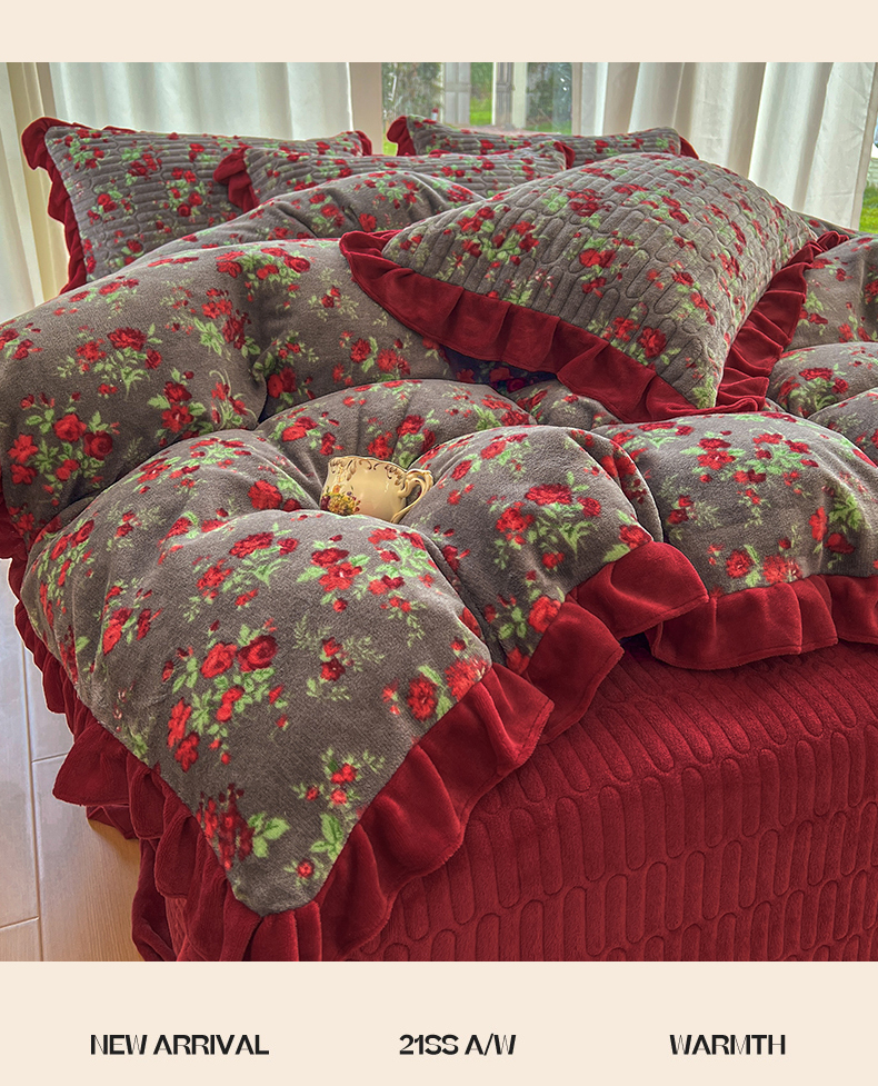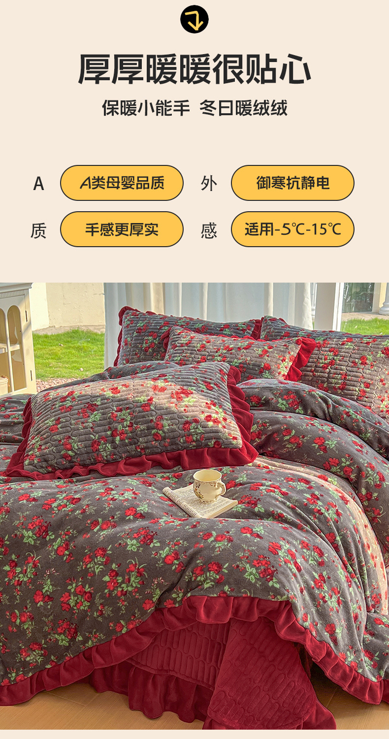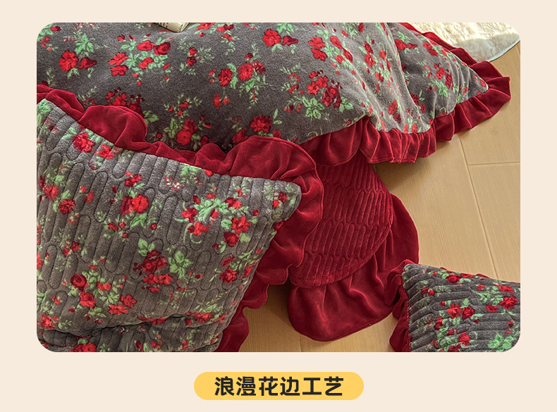 商品名称:美梦家纺 2025新款花边牛奶绒床盖四件套 玫瑰的故事
