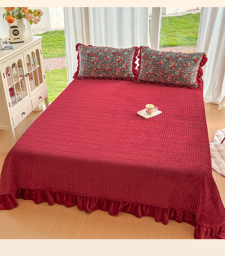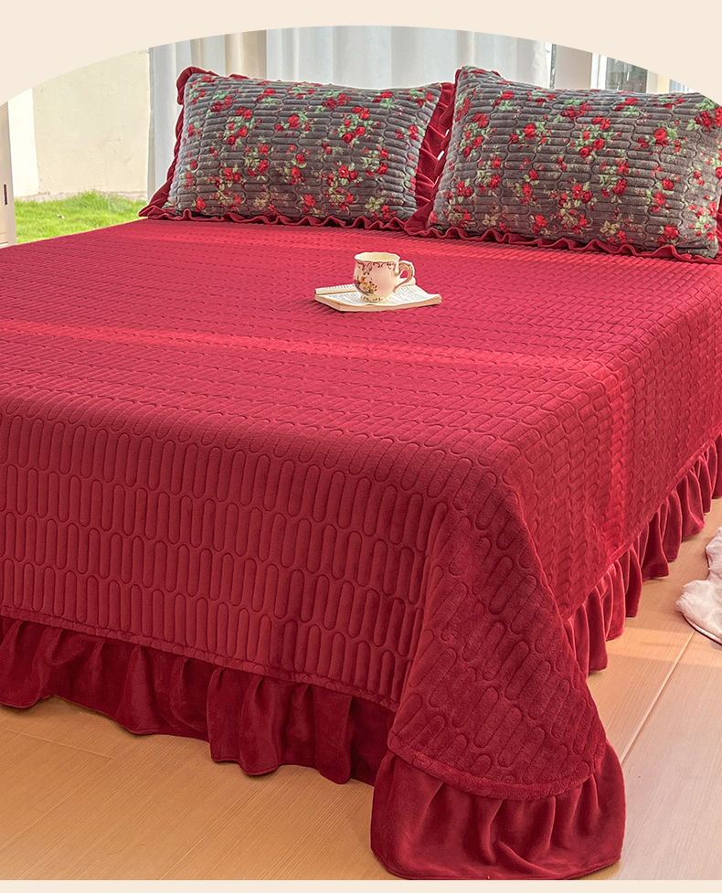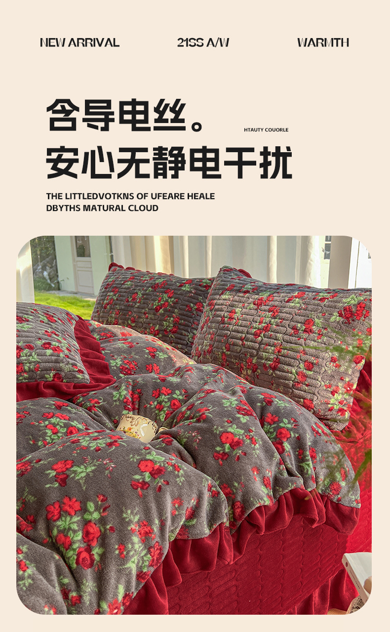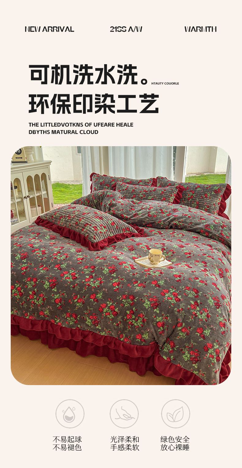 商品名称:美梦家纺 2025新款花边牛奶绒床盖四件套 玫瑰的故事