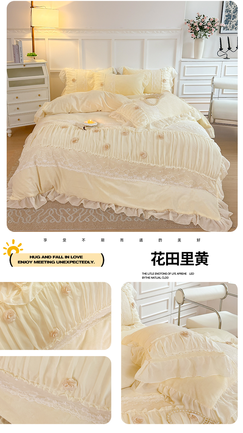 (总)吾欢心 2025新款糯小棉立体蝴蝶花边四件套-蝶恋花系列,蝶恋花白,蝶恋花粉,蝶恋花黄,蝶恋花咖,蝶恋花蓝,蝶恋花绿,蝶恋花紫