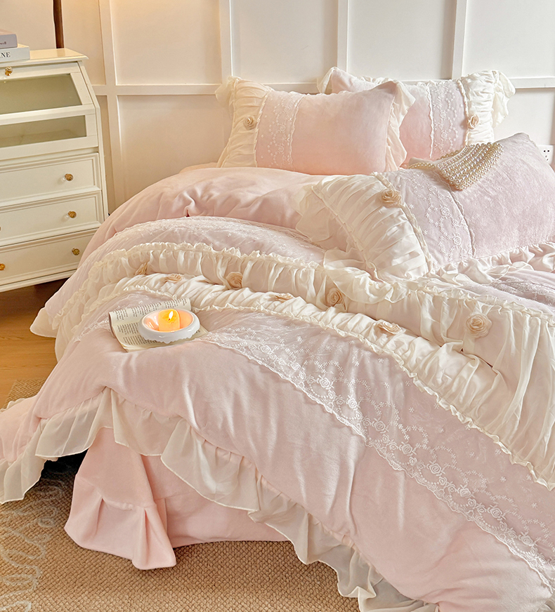 商品名称:吾欢心 2025秋冬加厚全消光婴儿绒四件套花田里床单款床盖款 花田里粉