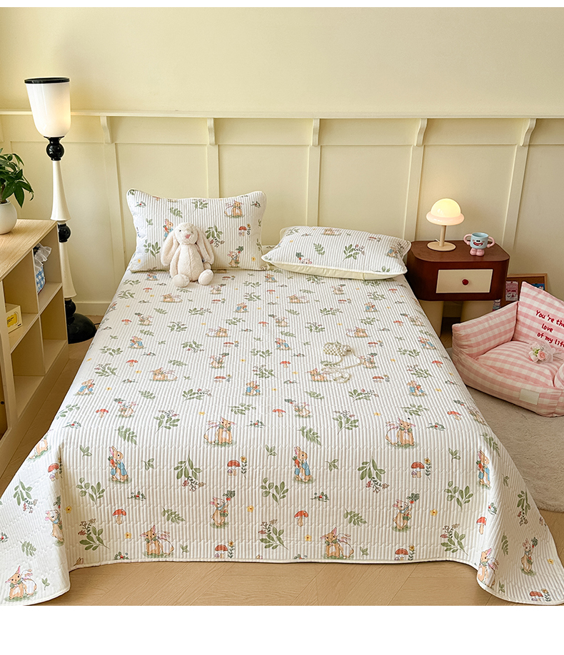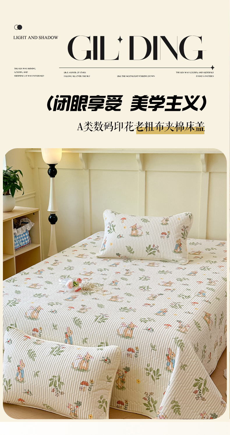 寐居家纺 2025新款A类数码印花老粗布夹棉床盖 春日半夏
