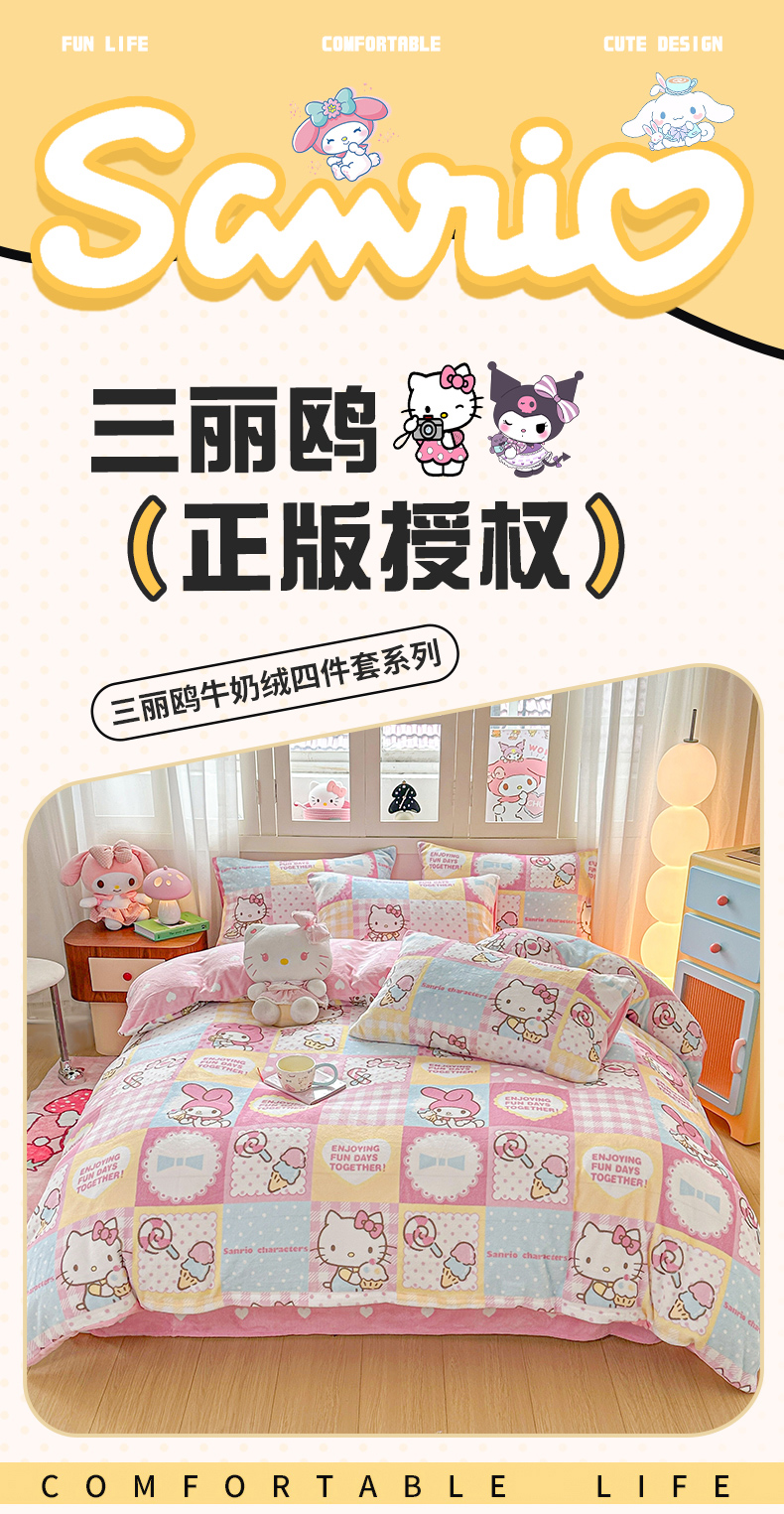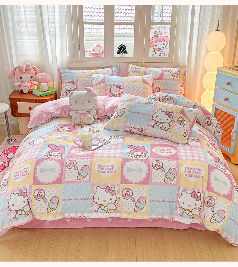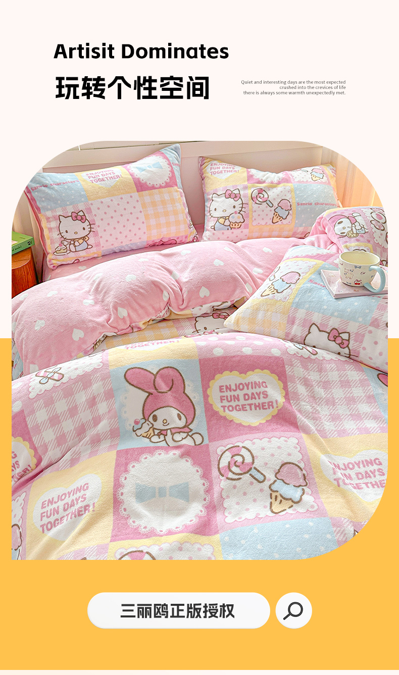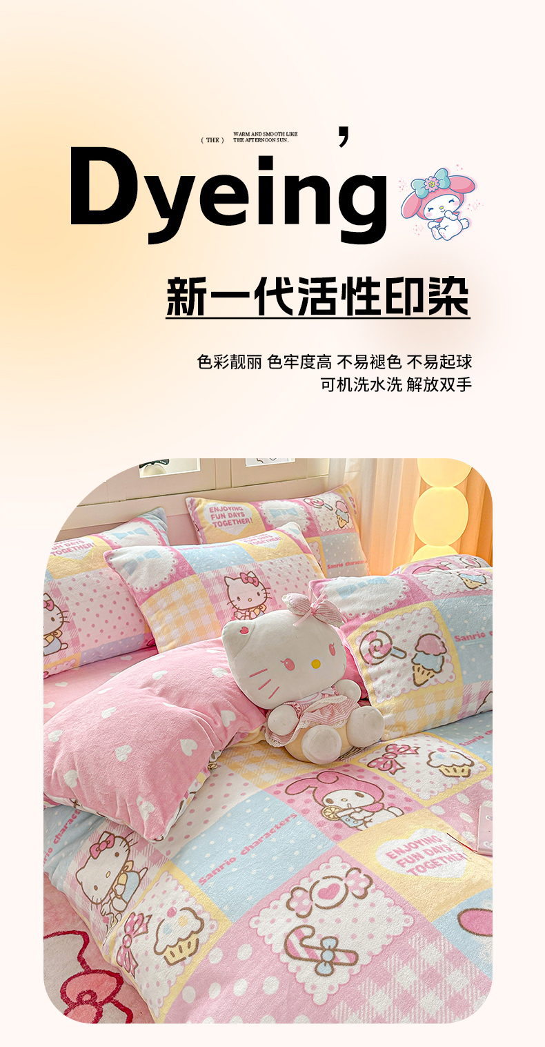 当前位置: 91家纺网 > 商品网购 > 床品套件 > 四件套 > 牛奶绒四件套 > 博雅 2025新款三丽鸥正版授权高克重牛奶绒小版四件套提供买家秀 牛奶绒小版-粉色美乐蒂KT猫