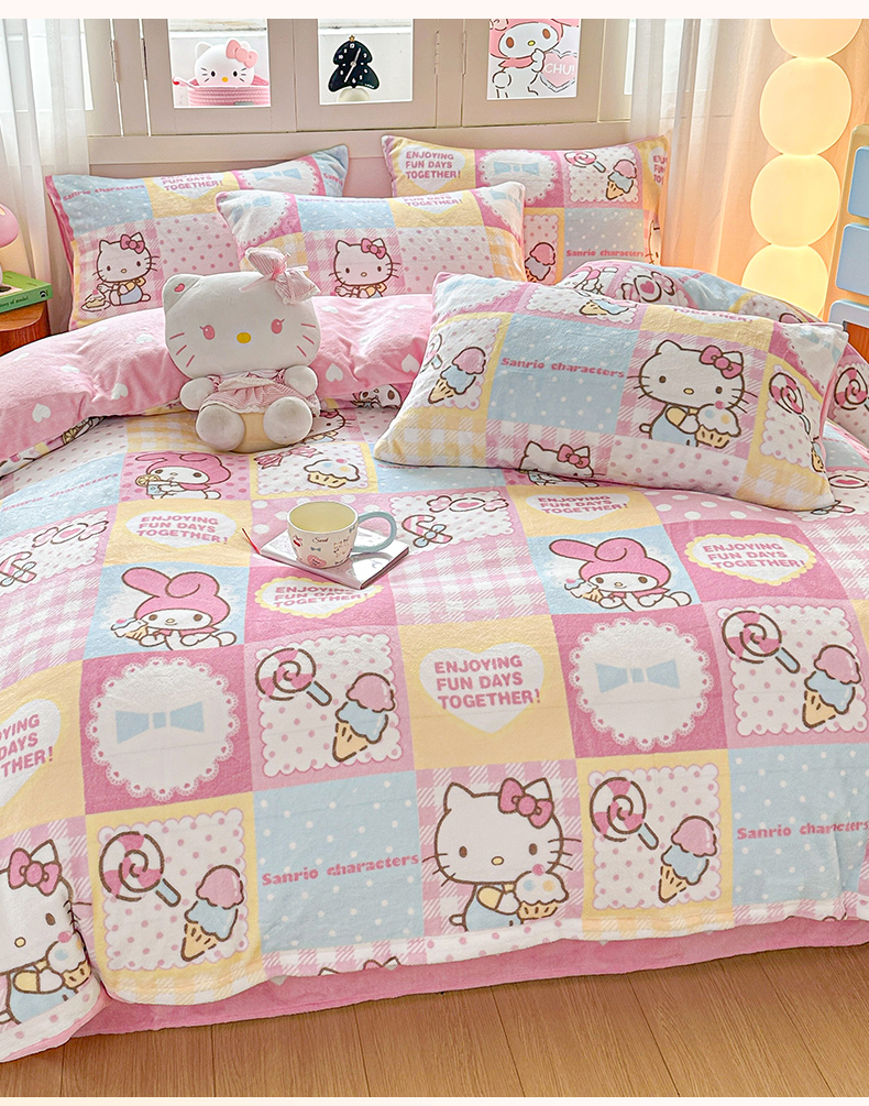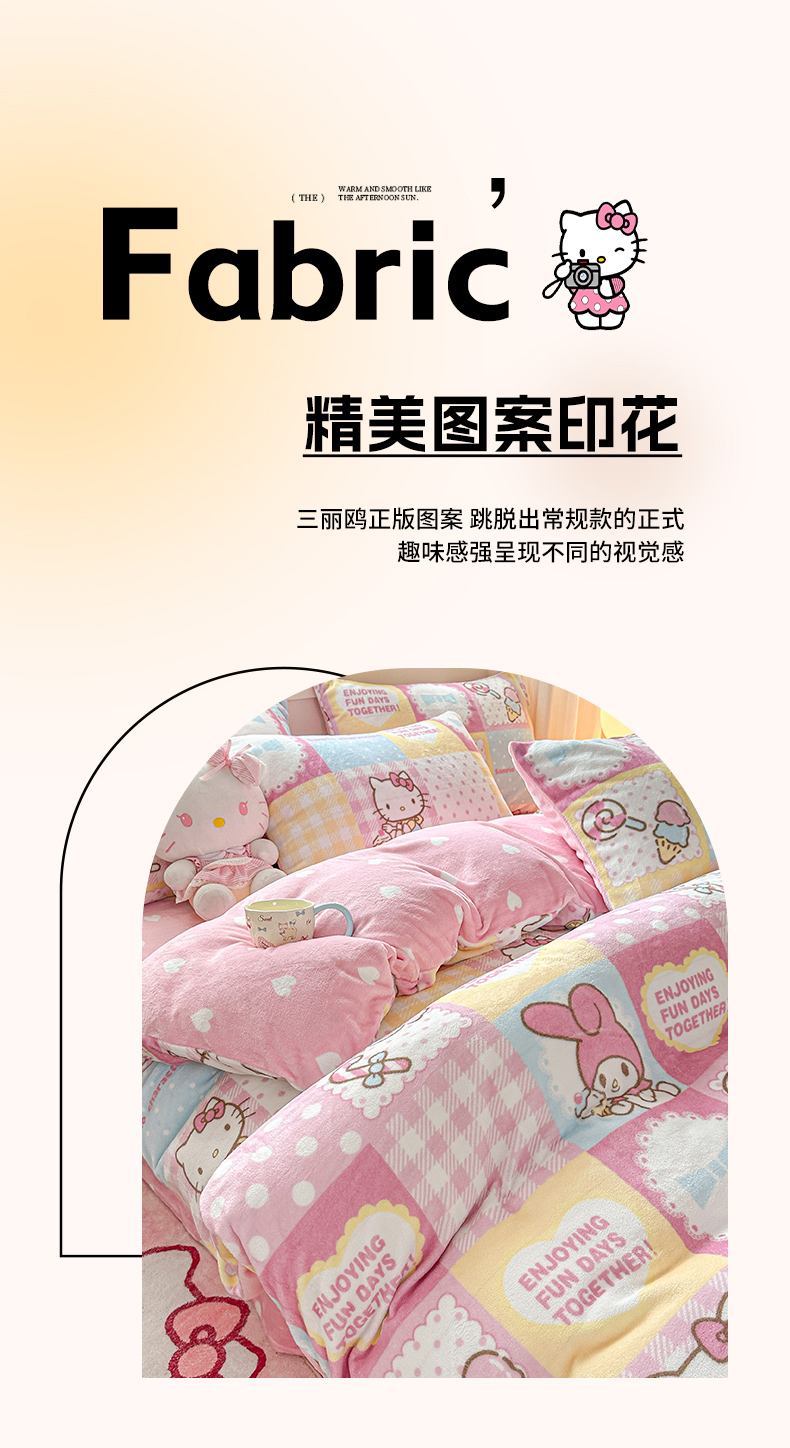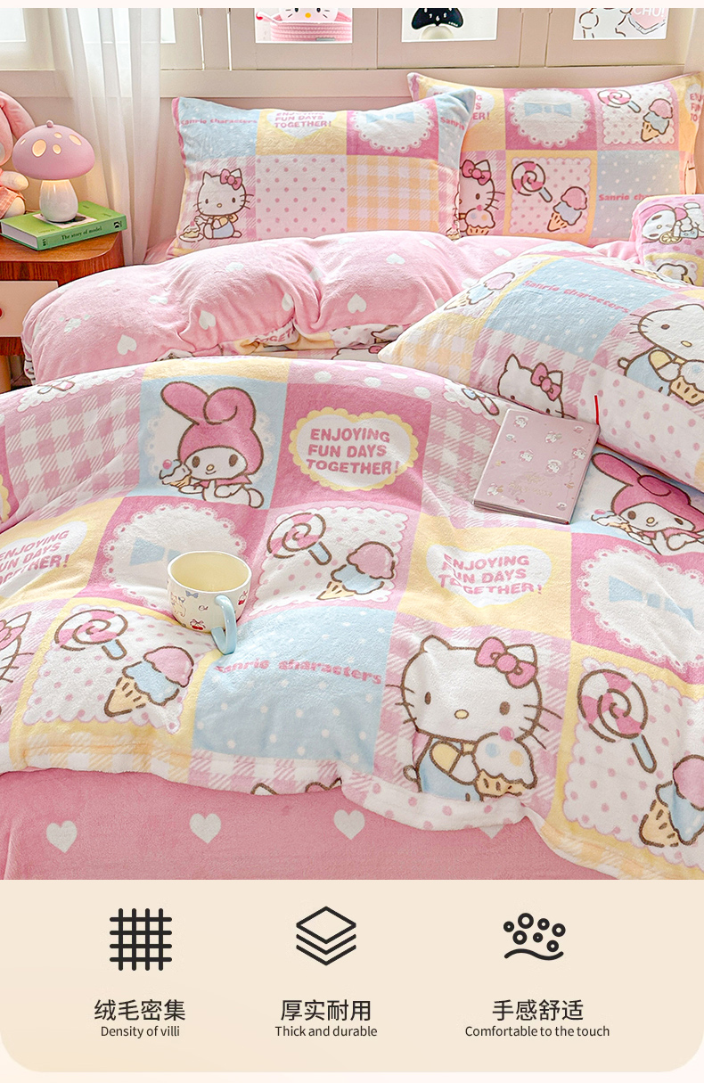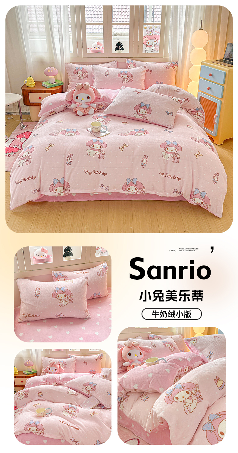 当前位置: 91家纺网 > 商品网购 > 床品套件 > 四件套 > 牛奶绒四件套 > 博雅 2025新款三丽鸥正版授权高克重牛奶绒小版四件套提供买家秀 牛奶绒小版-粉色美乐蒂KT猫