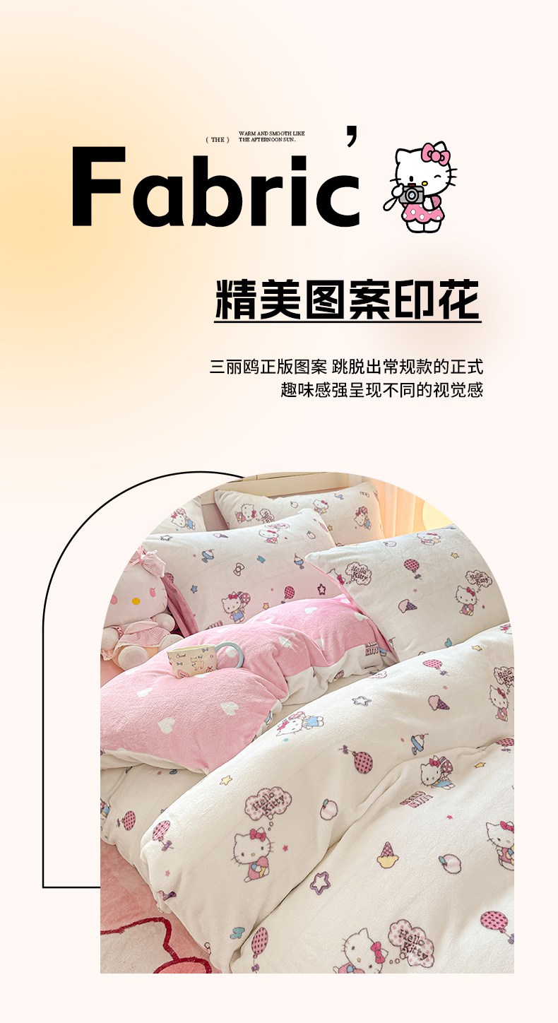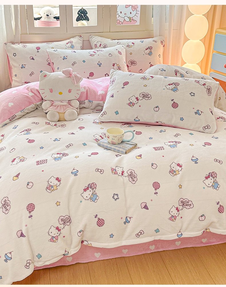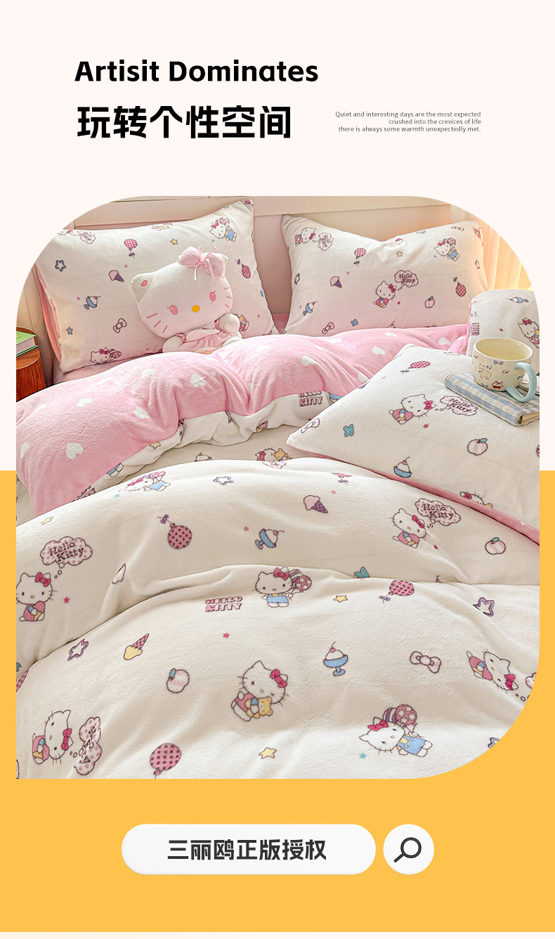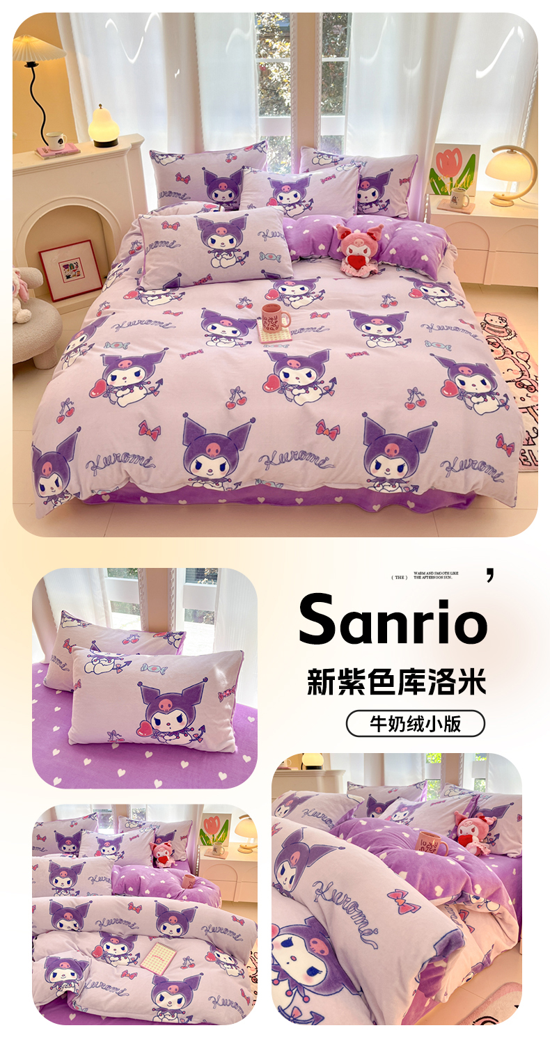 当前位置: 91家纺网 > 商品网购 > 床品套件 > 四件套 > 牛奶绒四件套 > 博雅 2025新款三丽鸥正版授权高克重牛奶绒小版四件套提供买家秀 牛奶绒小版-美美KT专版花型