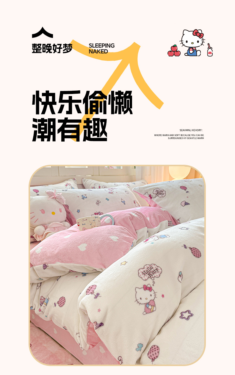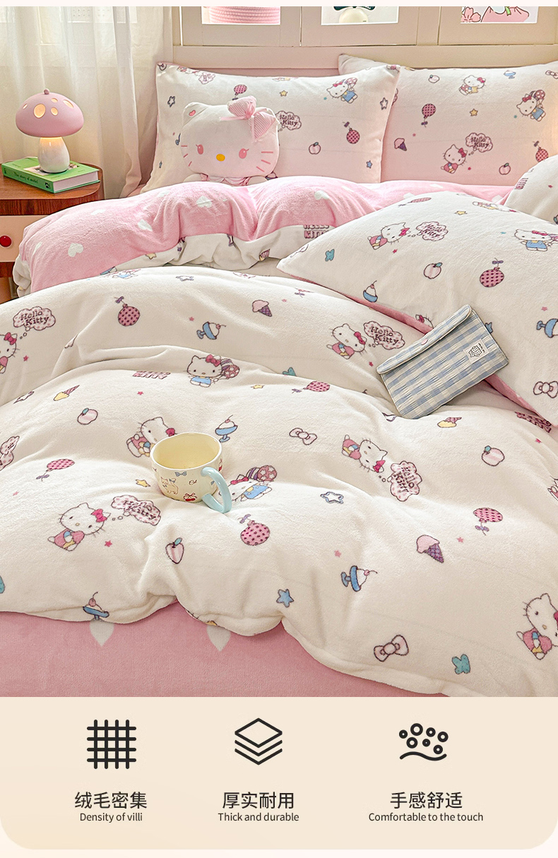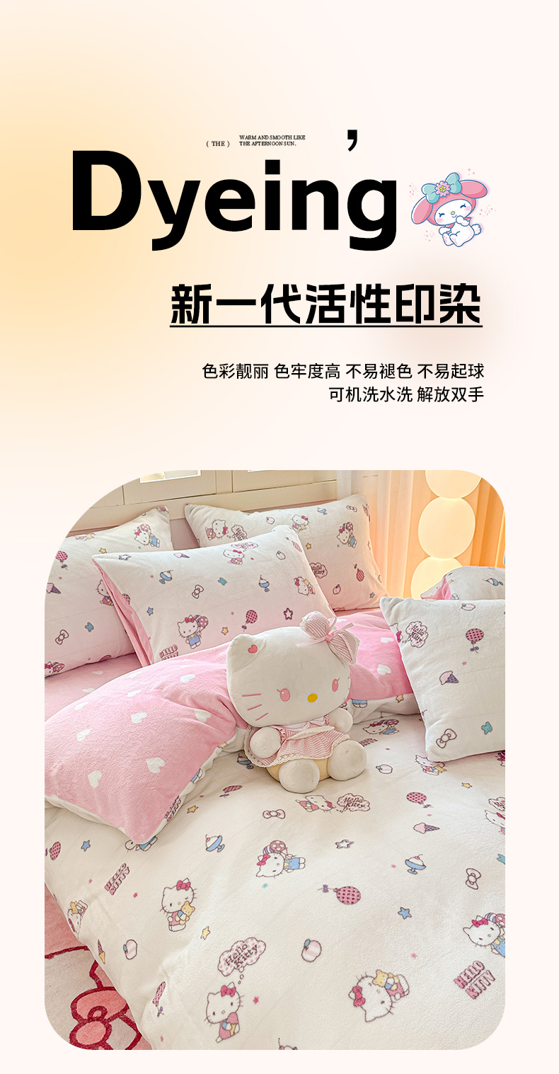 当前位置: 91家纺网 > 商品网购 > 床品套件 > 四件套 > 牛奶绒四件套 > 博雅 2025新款三丽鸥正版授权高克重牛奶绒小版四件套提供买家秀 牛奶绒小版-美美KT专版花型