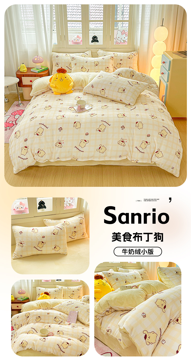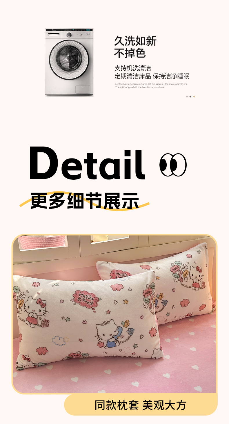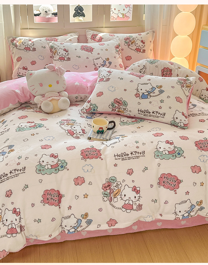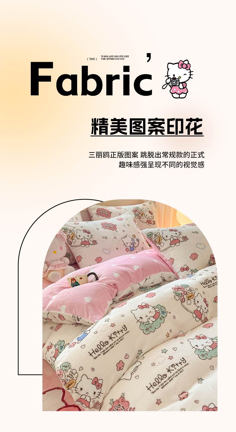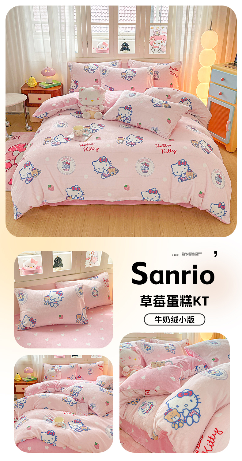 当前位置: 91家纺网 > 商品网购 > 床品套件 > 四件套 > 牛奶绒四件套 > 博雅 2025新款三丽鸥正版授权高克重牛奶绒小版四件套提供买家秀 牛奶绒小版-幸福KT猫专版花型