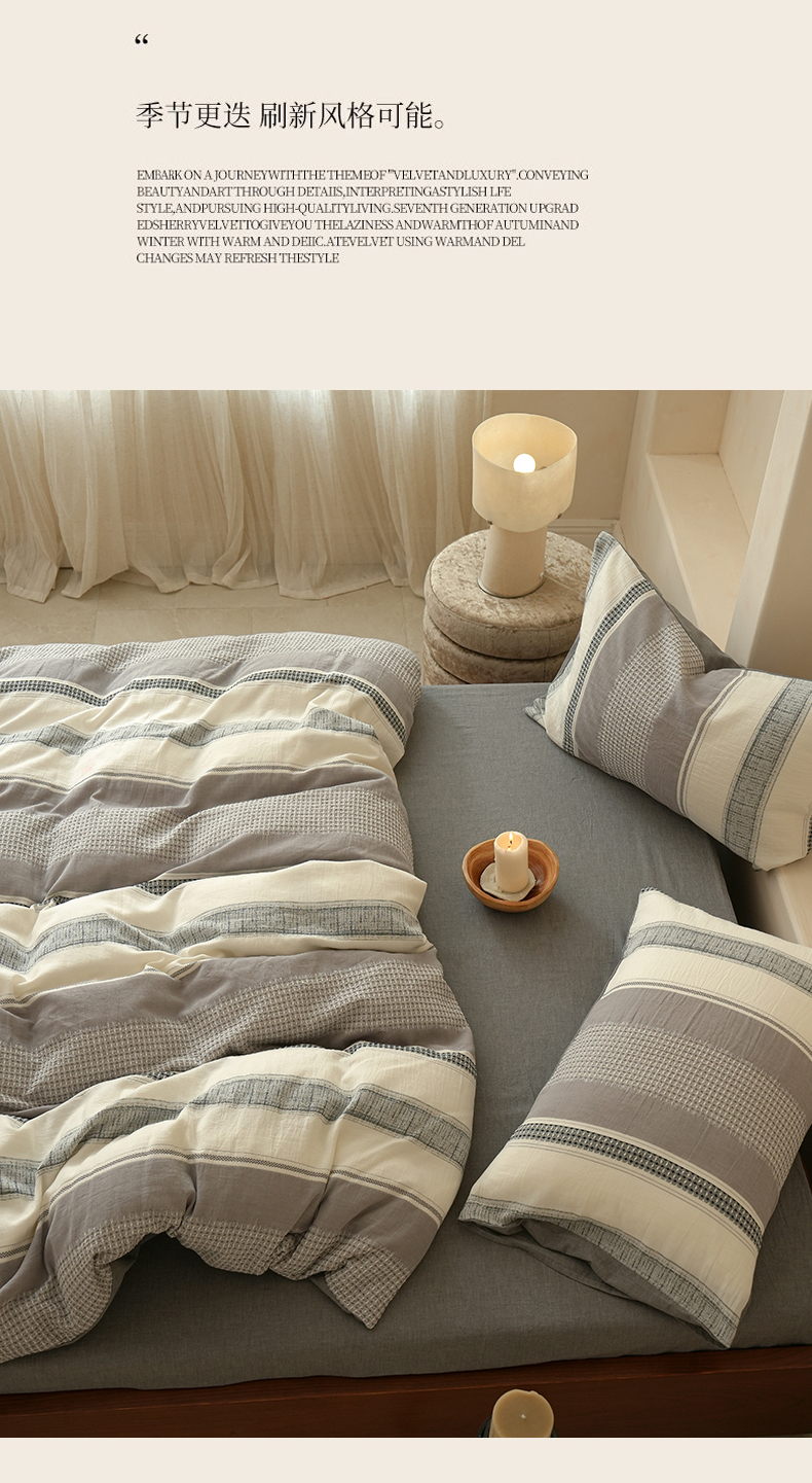 (总)寐居 2023年新款全棉夹棉床笠,低调-灰,格调-咖,优雅-白