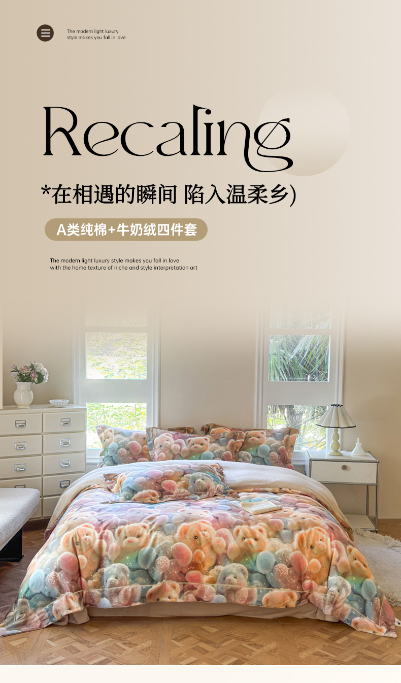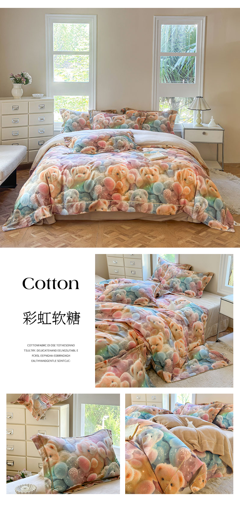 当前位置: 91家纺网 > 商品网购 > 床品套件 > 四件套 > 牛奶绒四件套 > 7V 2025新款纯棉加绒四件套 彩虹软糖