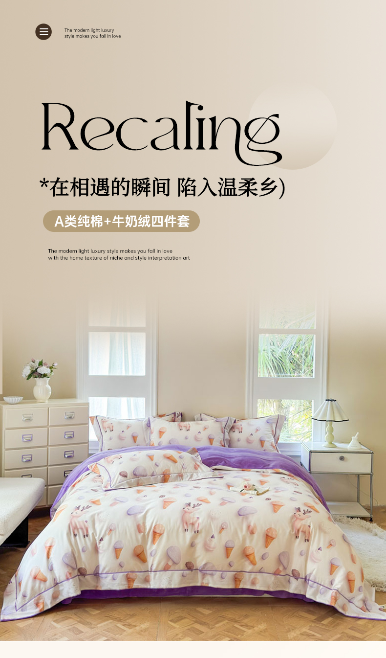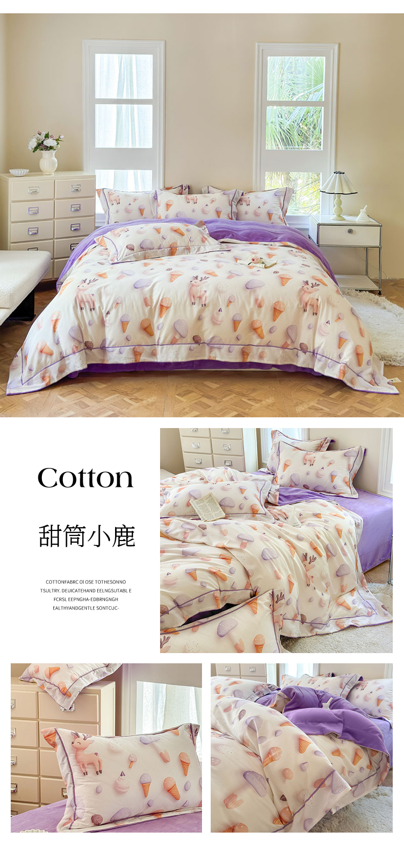 当前位置: 91家纺网 > 商品网购 > 床品套件 > 四件套 > 牛奶绒四件套 > 7V 2025新款纯棉加绒四件套 甜筒小鹿