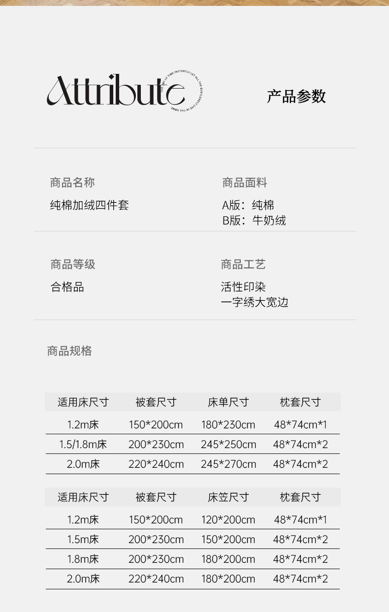 1.8m床笠款四件套 | ¥135.00 |
