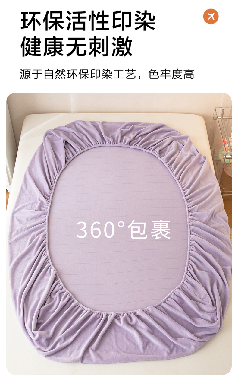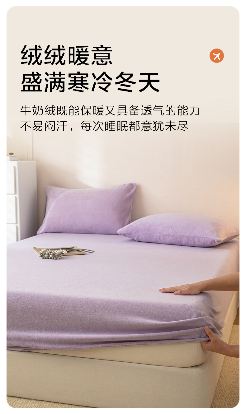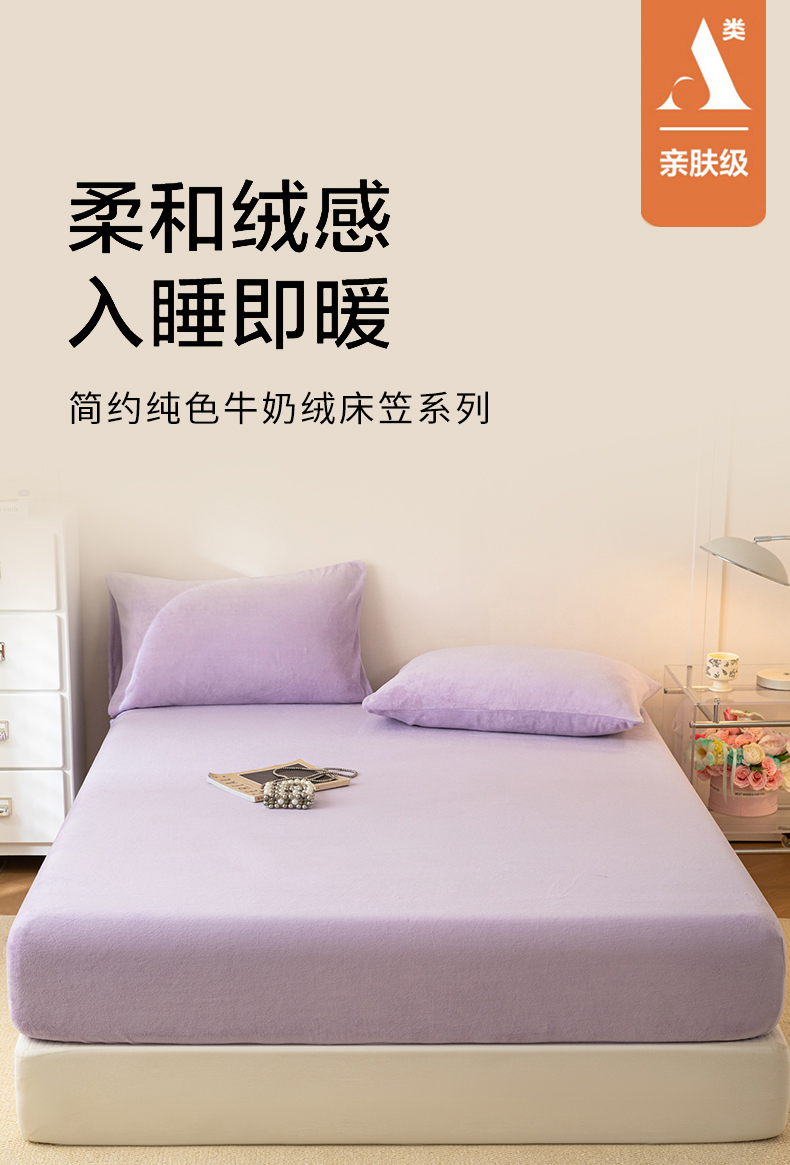• 91家纺网 家纺一手货源 找家纺 眠博士 2025新款简约牛奶绒纯色单床笠-场景二 牛奶绒纯色床笠-丁香紫