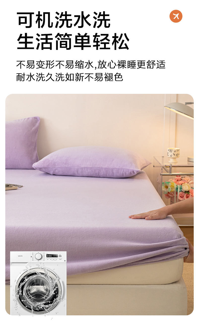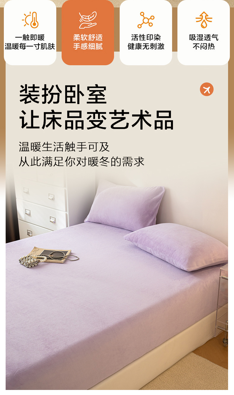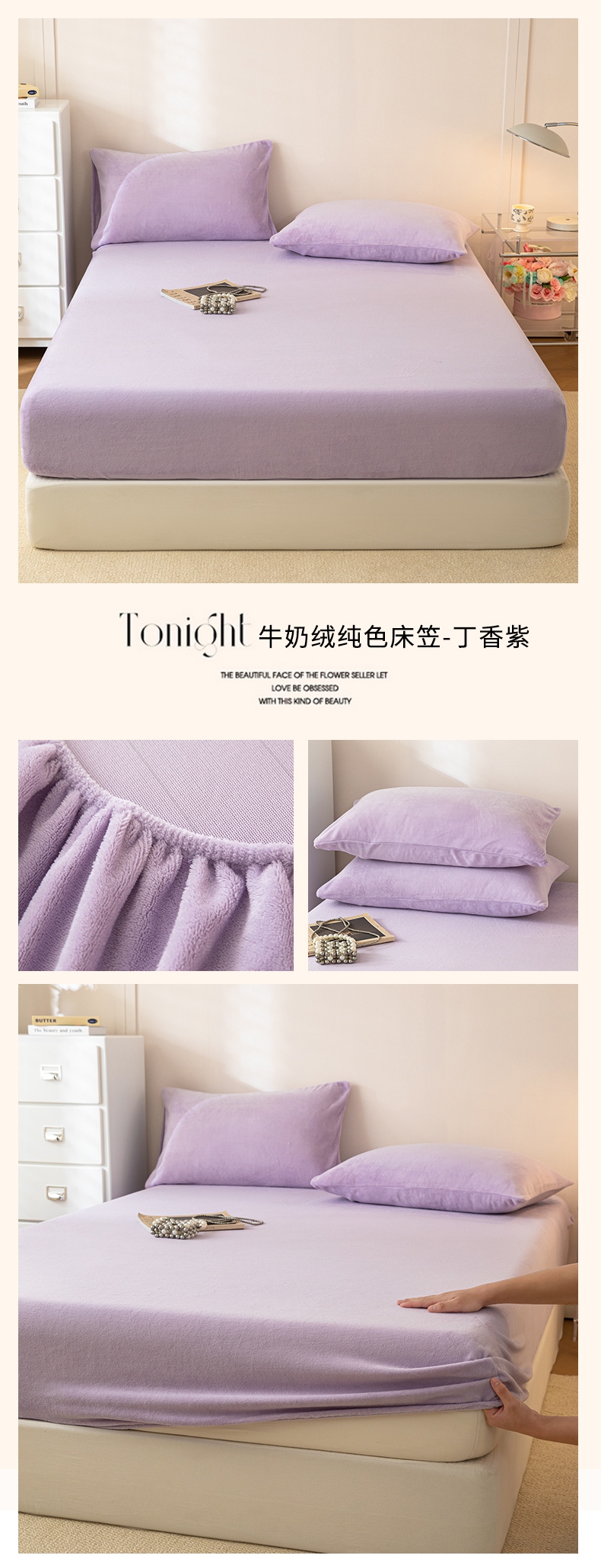 • 91家纺网 家纺一手货源 找家纺 眠博士 2025新款简约牛奶绒纯色单床笠-场景二 牛奶绒纯色床笠-丁香紫