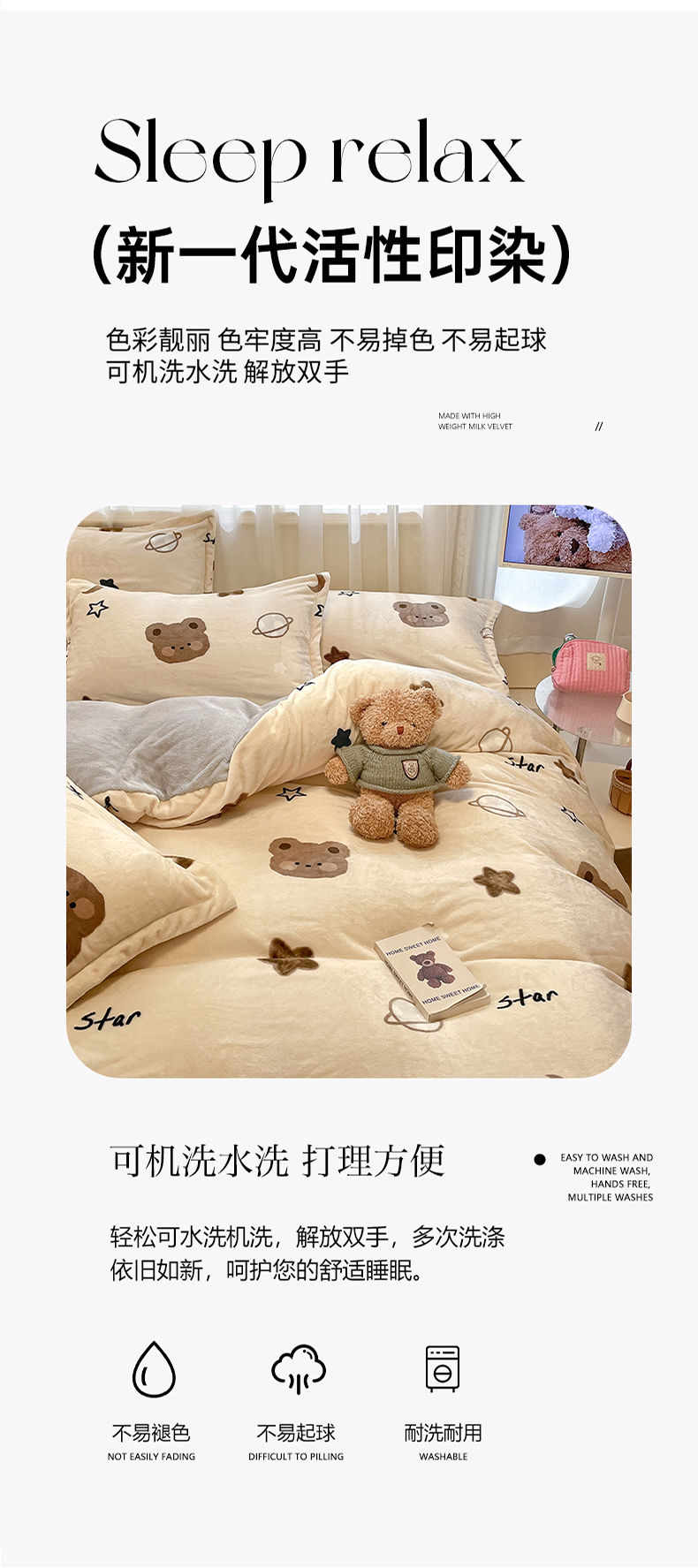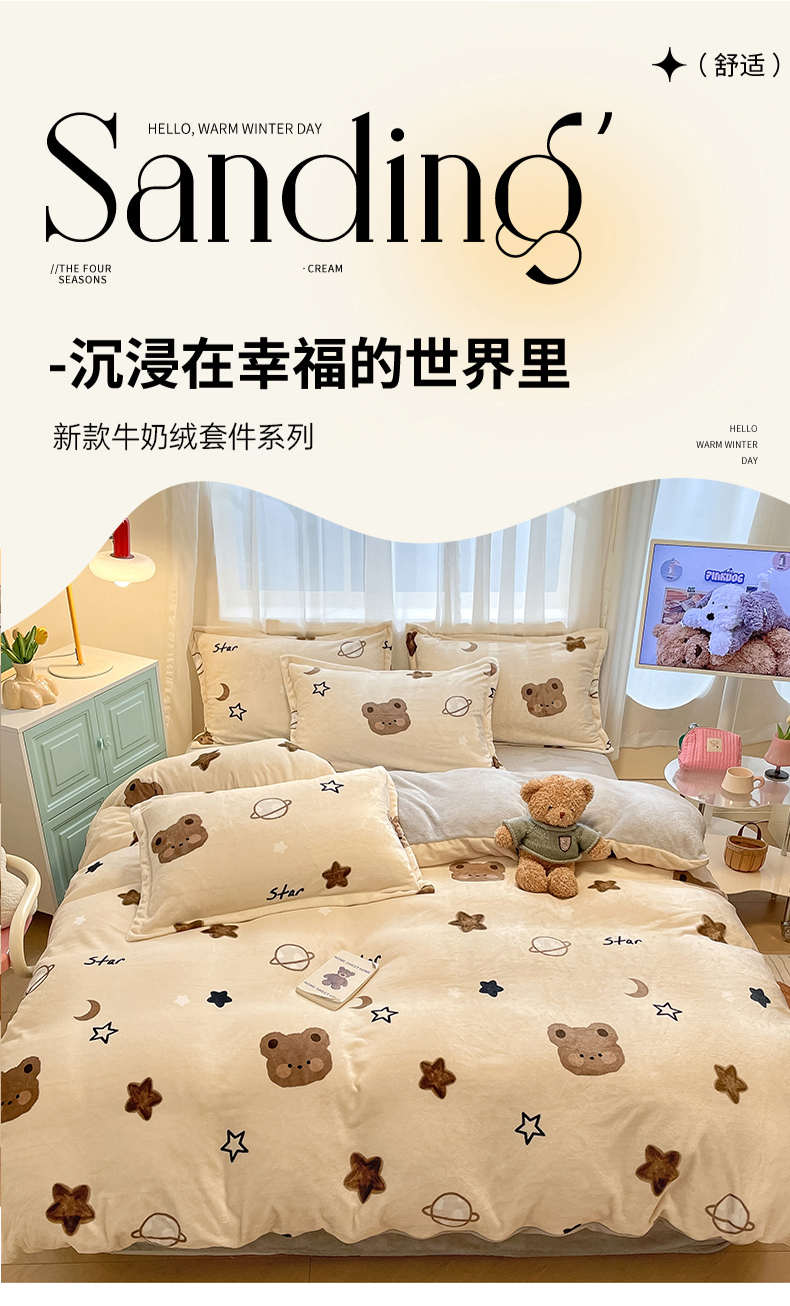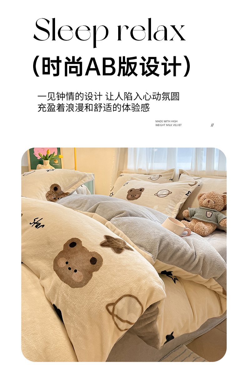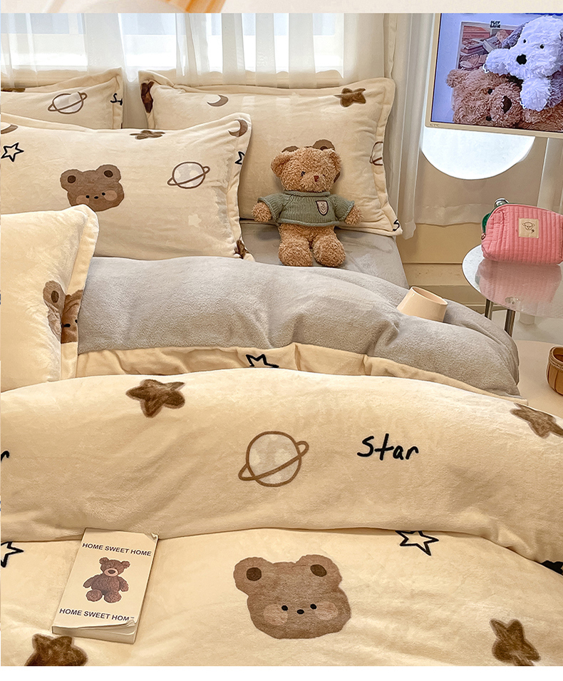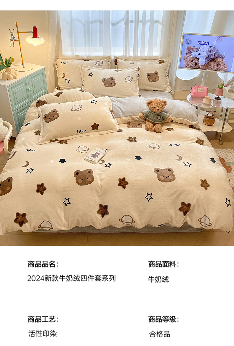 当前位置: 91家纺网 > 商品网购 > 床品套件 > 四件套 > 牛奶绒四件套 > 川悦生活 2025新款高克重牛奶绒四件套-系列二 星际小熊