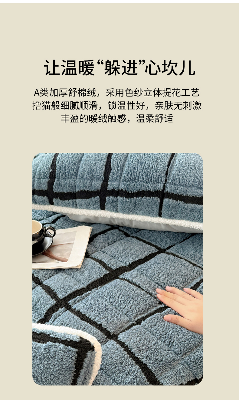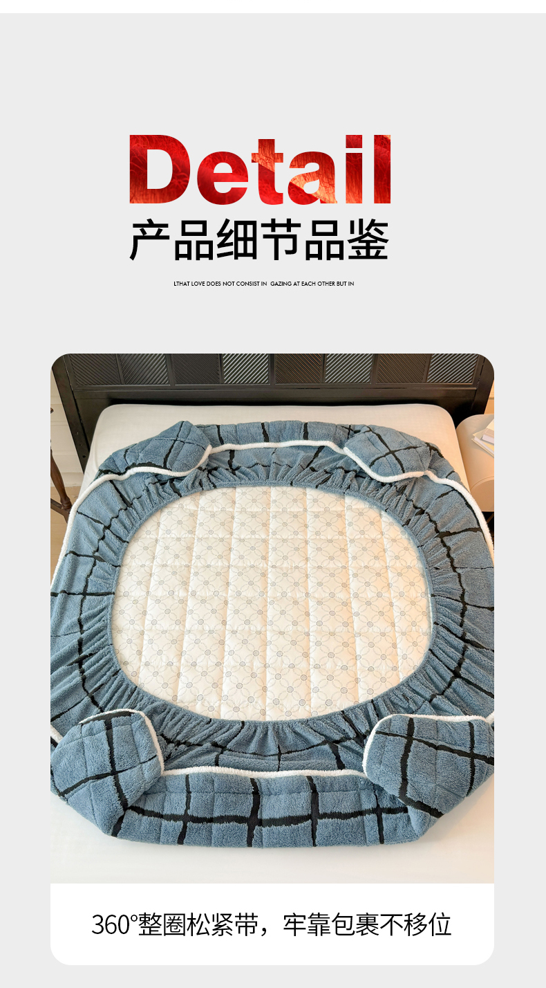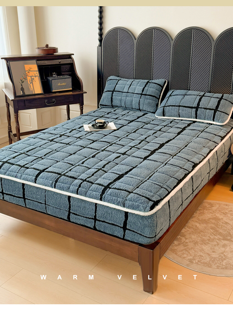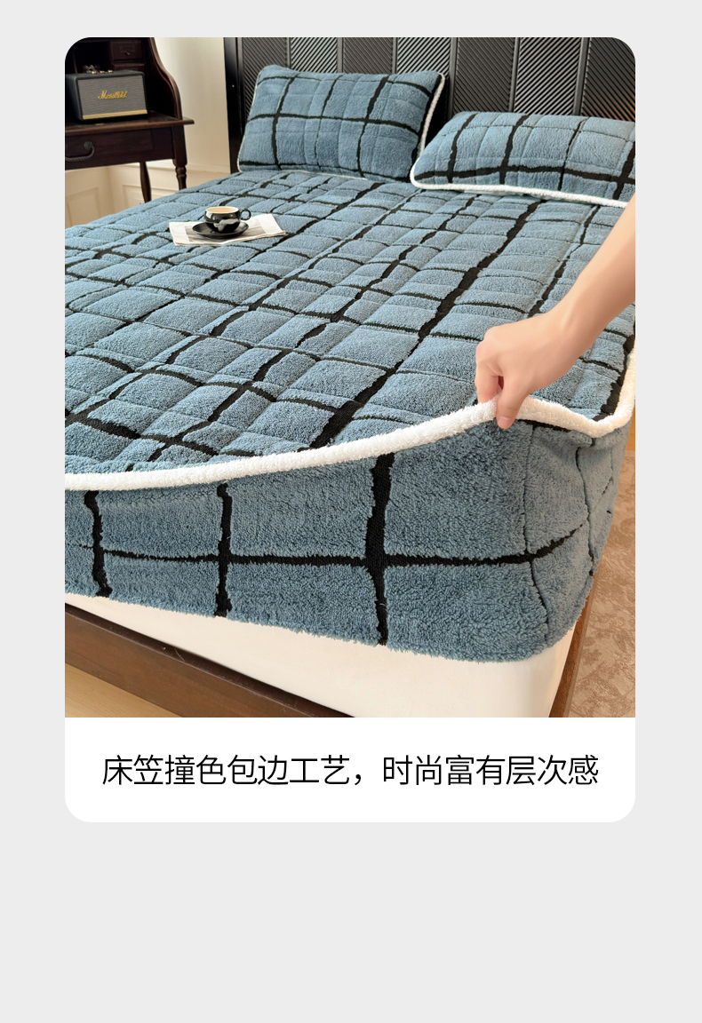 • 91家纺网 家纺一手货源 找家纺 LIFE.丽芙 2025秋冬新款色纱提花舒棉绒加厚夹棉单床笠款床垫子保护套保暖床罩子三件套 格调-蓝灰