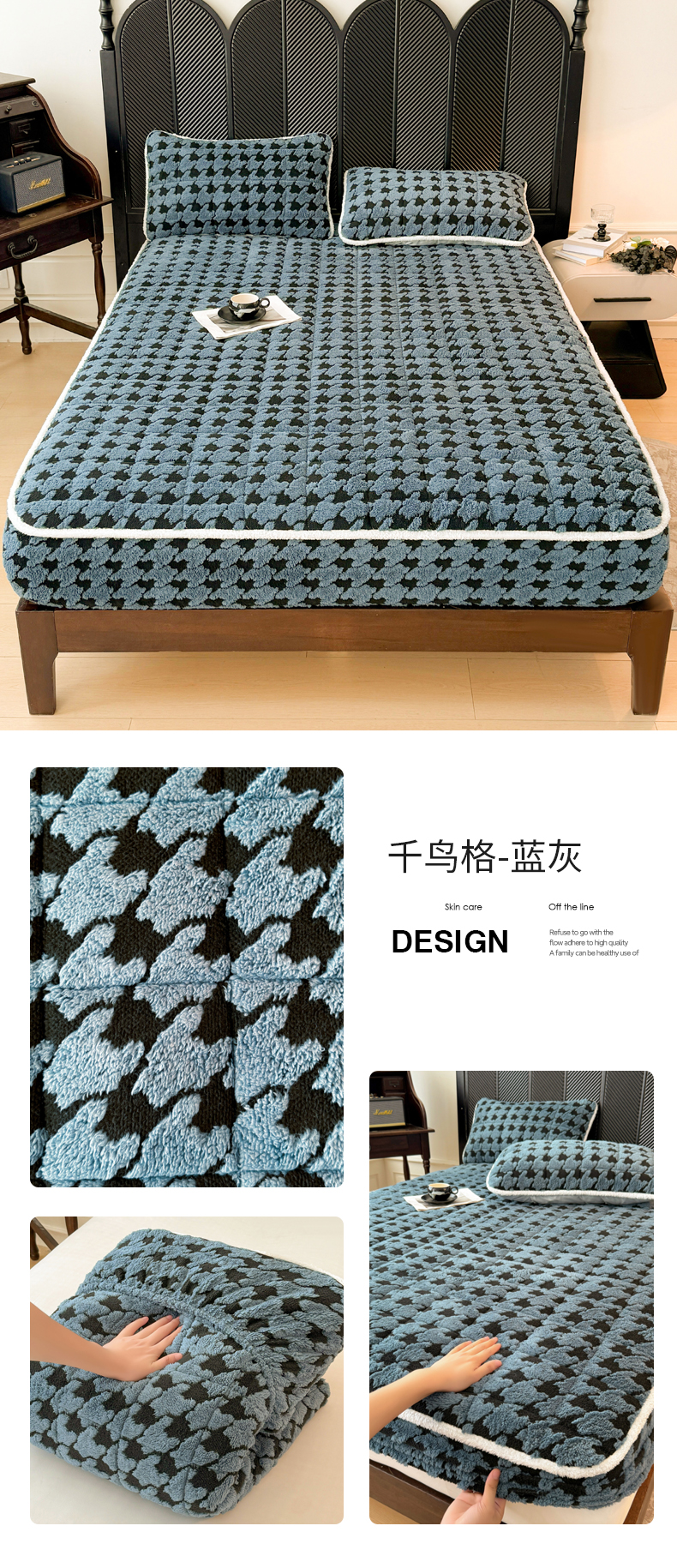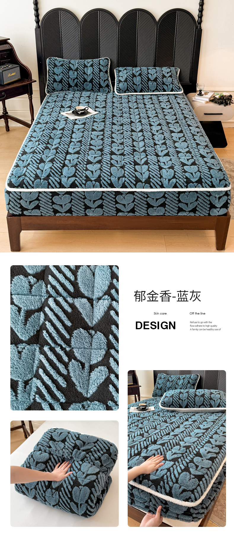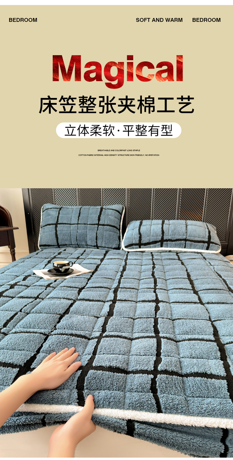 • 91家纺网 家纺一手货源 找家纺 LIFE.丽芙 2025秋冬新款色纱提花舒棉绒加厚夹棉单床笠款床垫子保护套保暖床罩子三件套 格调-蓝灰