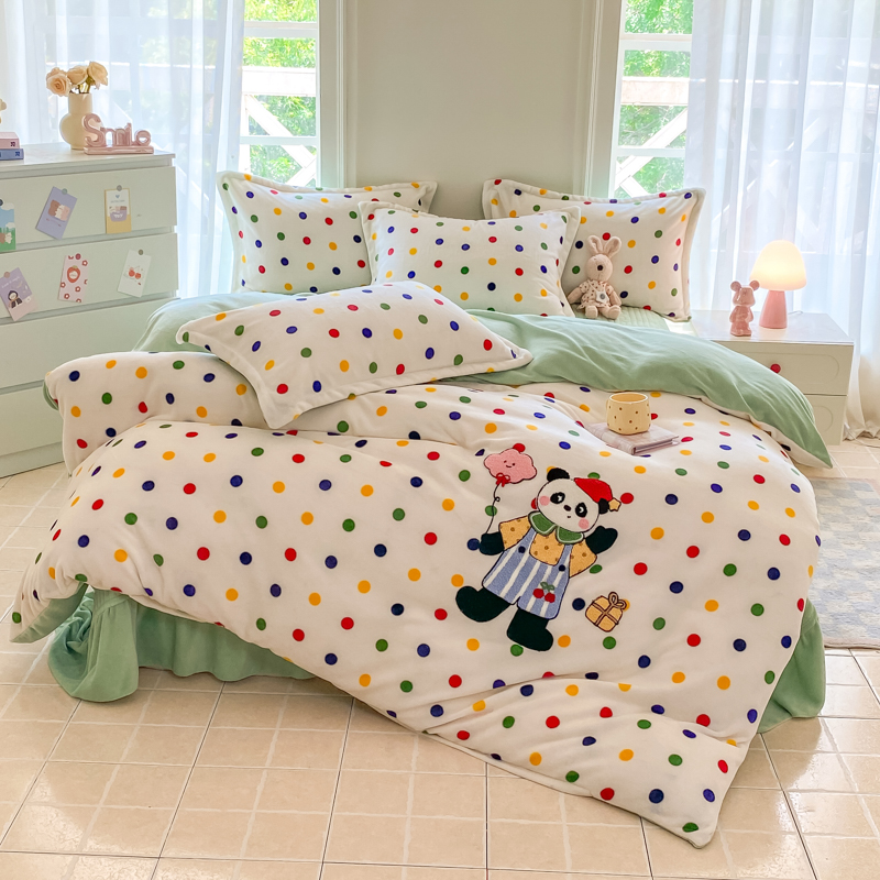 梦可莱家居 2025新款牛奶绒毛巾绣加厚床盖四件套 背带熊猫