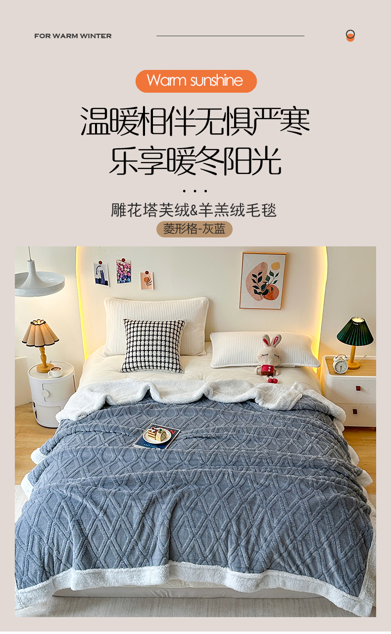 当前位置: 91家纺网 > 商品网购 > 毛毯休闲毯绒毯 > 毛毯 > (总)悦织湾家纺 2025新款塔芙绒羊羔绒舒棉绒毛毯菱形格系列
