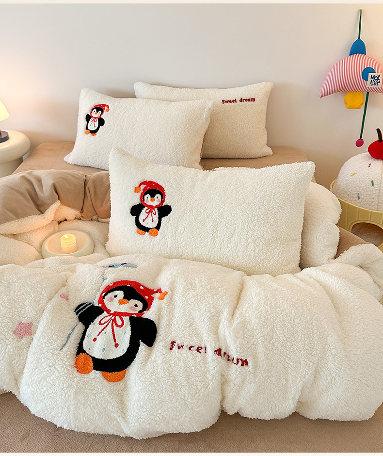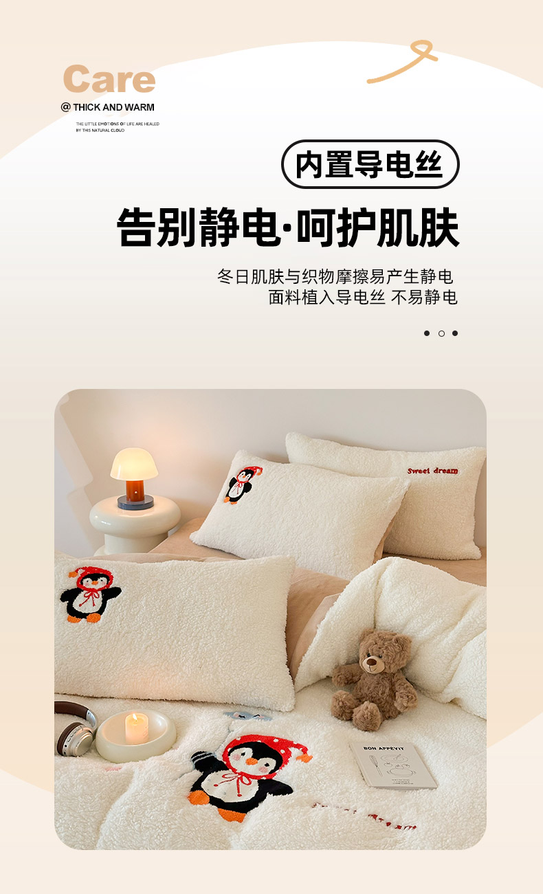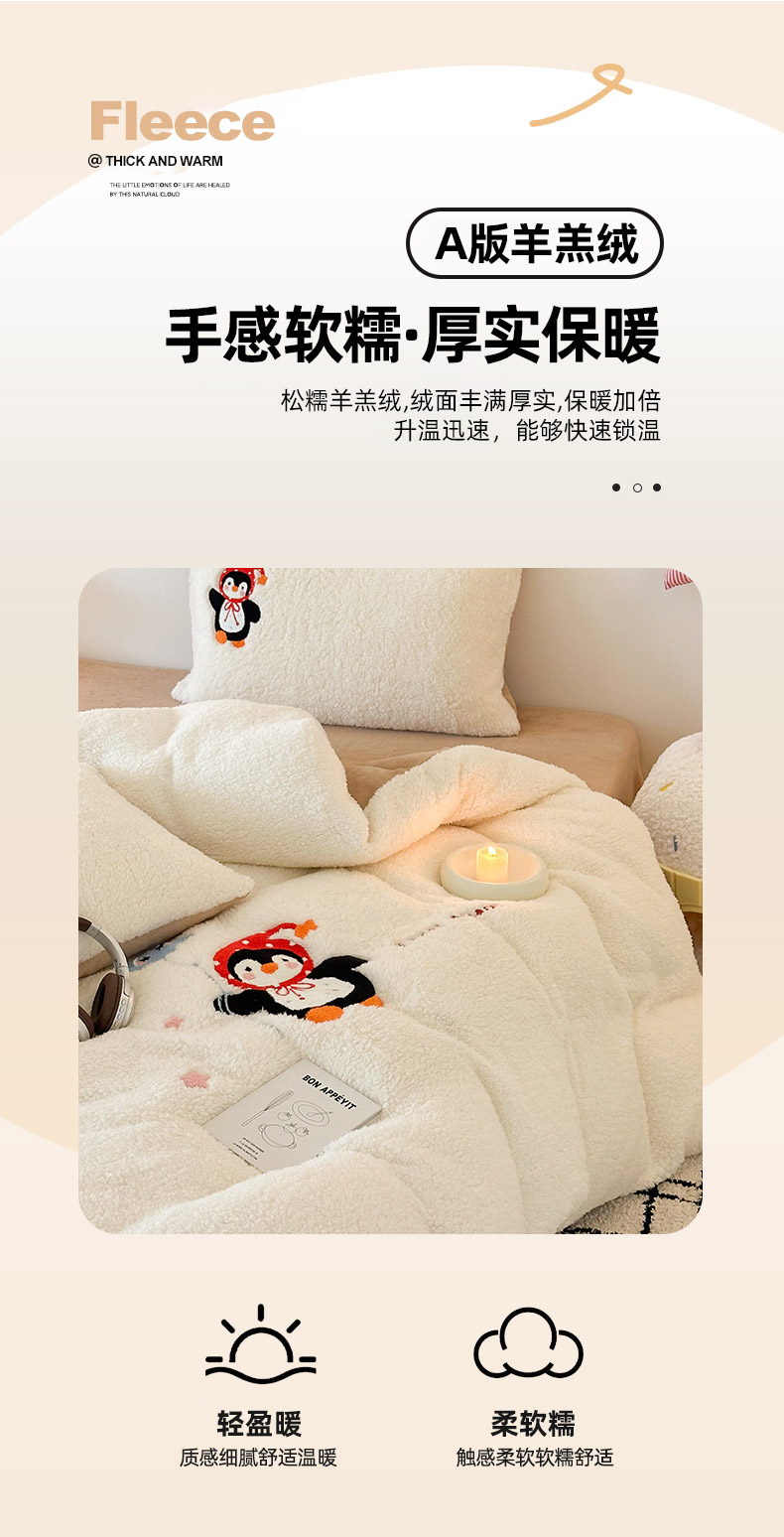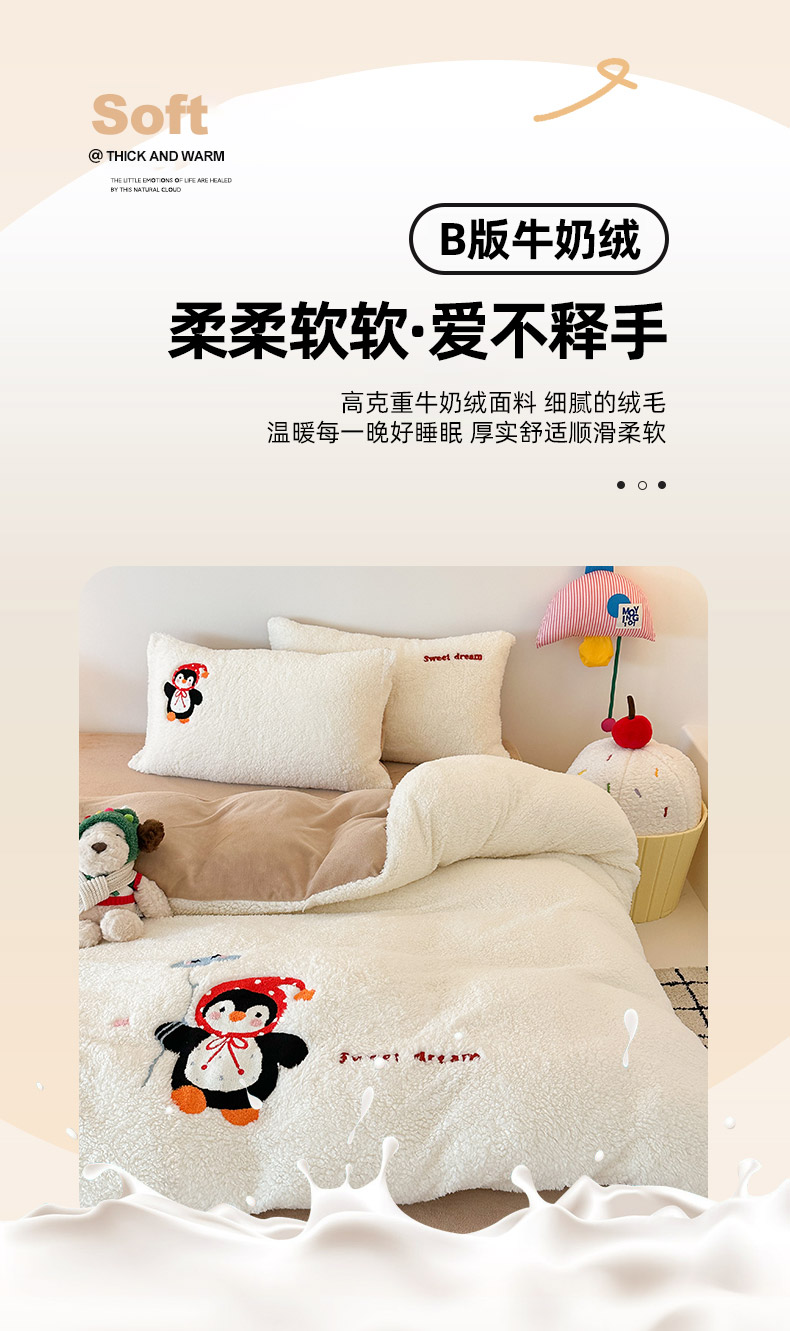 (总)梓之赫 2025新款小版羊羔绒牛奶绒卡通四件套冬季加厚保暖,汉堡-白卡其,汉堡-黄,汉堡-咖,企鹅-白卡其,企鹅-粉,企鹅-蓝,曲奇-白粉,星星小狗-白卡其,星星小狗-蓝