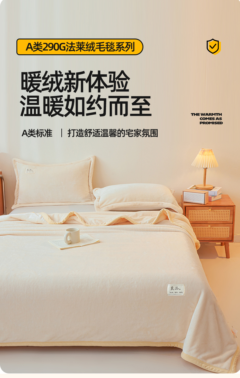 当前位置: 91家纺网 > 商品网购 > 毛毯休闲毯绒毯 > 法莱绒毯 > 多谷家纺 2025新款加厚法莱绒绒双面四季多功能毛毯毯子米白色
