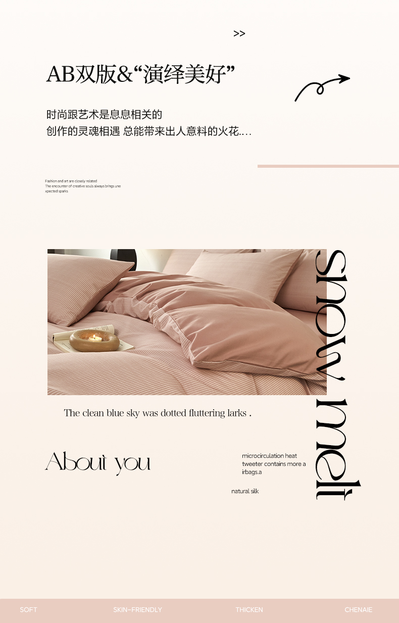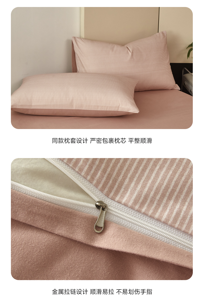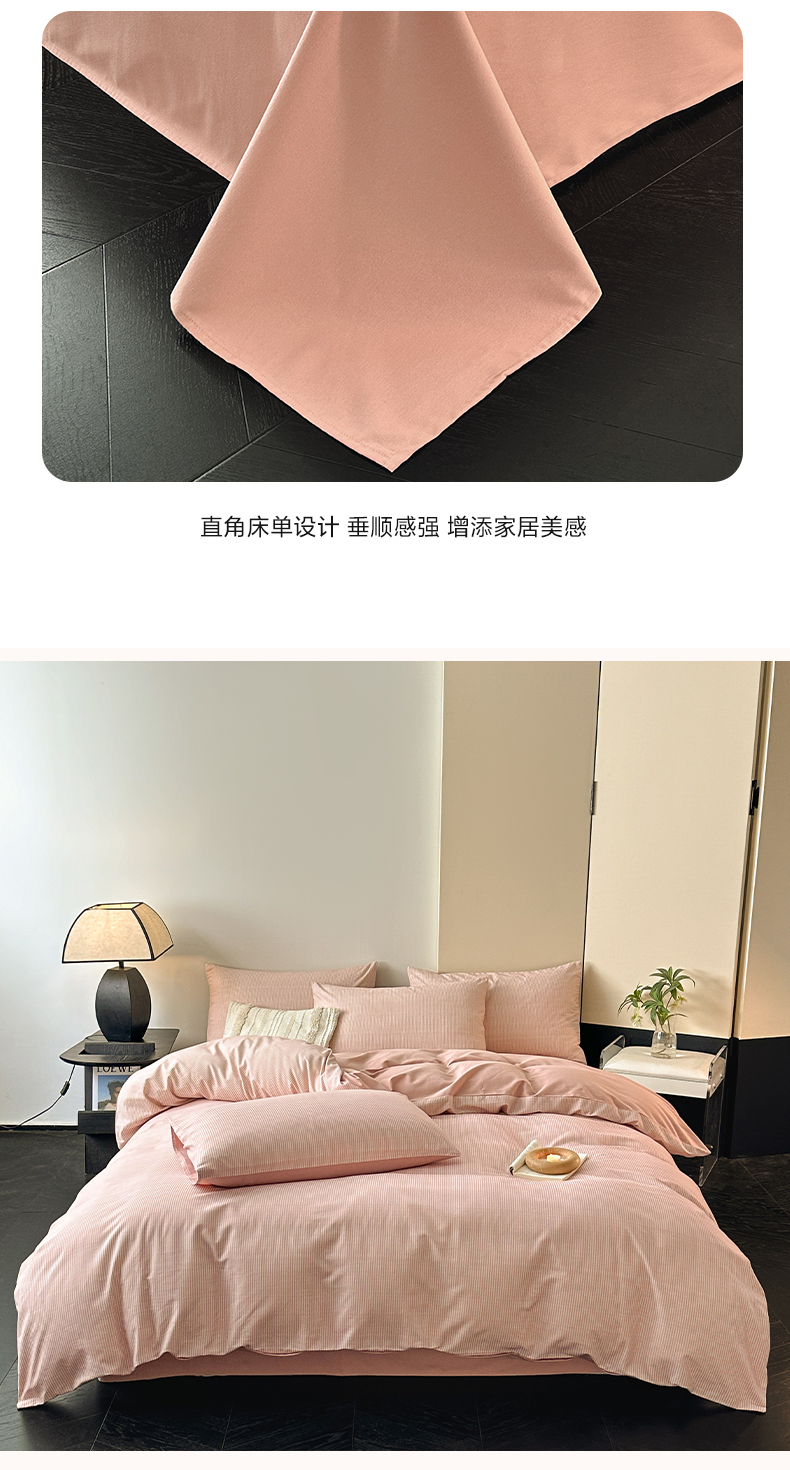 商品名称:雅居纺家纺 2025新款简约款全棉磨毛四件套 宁静-粉条