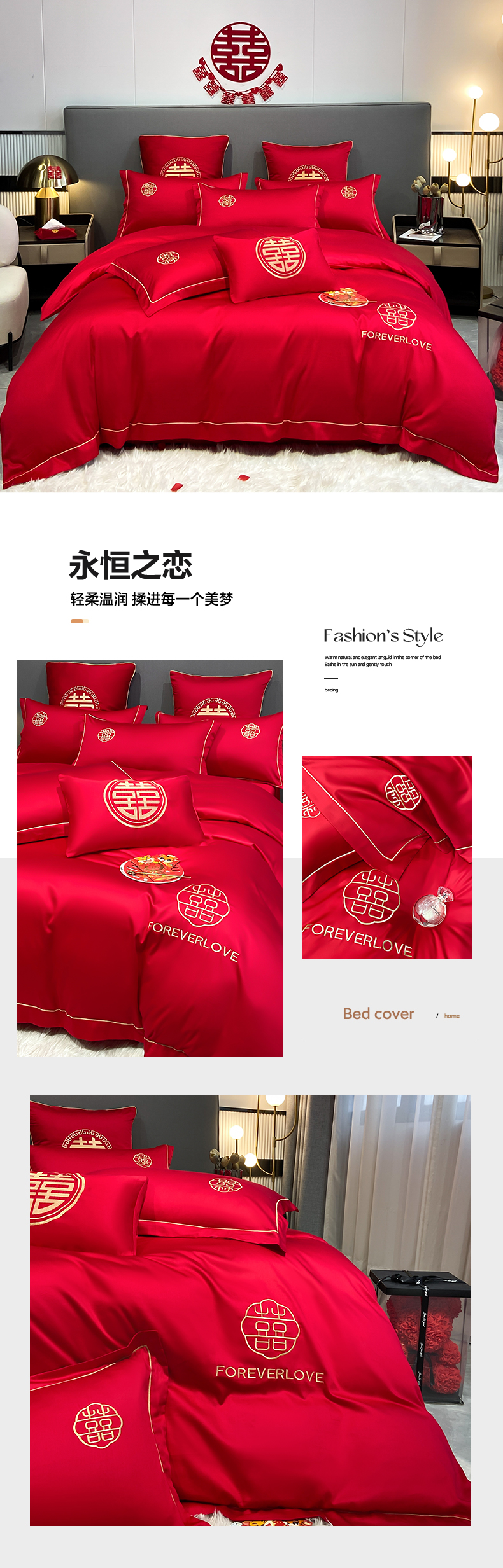(总)花愿(原花纪) 2026新款婚庆刺绣四件套(礼盒款),浪漫花园-红,浪漫一生,龙凤呈祥,满心欢喜,天赐良缘,喜气洋洋,喜结良缘