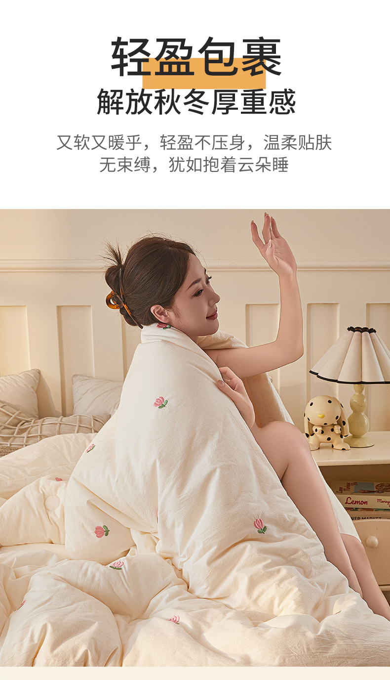 当前位置: 91家纺网 > 商品网购 > 被子 > 冬被 > 创优家纺 2025新款专版绣花被全棉满绣刺绣被芯里外全棉新疆棉花被纯棉被芯被子春秋被冬被儿童被直播 里外全棉-郁金香
