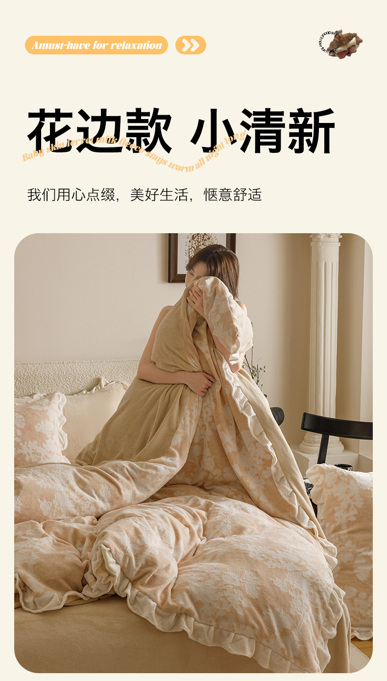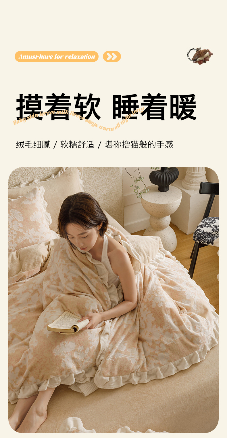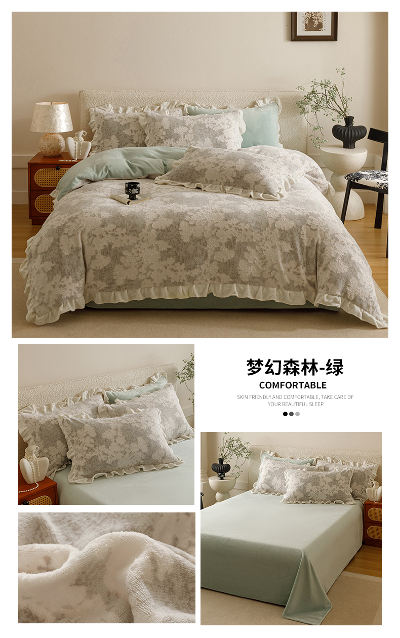 当前位置: 91家纺网 > 商品网购 > 床品套件 > 四件套 > 牛奶绒四件套 > 恬思语家纺 2025新款亲肤舒适韩风小清新花边牛奶绒四件套 梦幻森林-粉