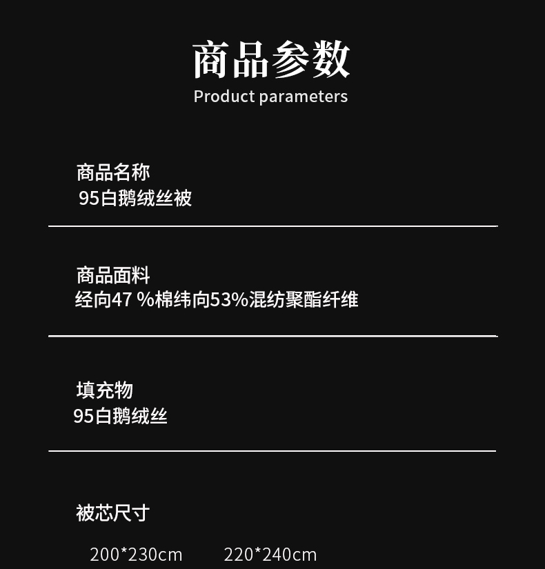 白鹅绒丝 220-240 填充2400克 厚冬被 | ¥665.00 |