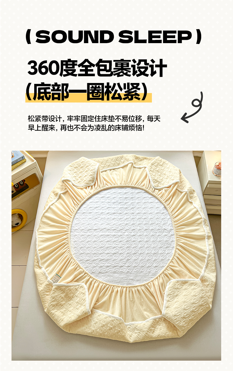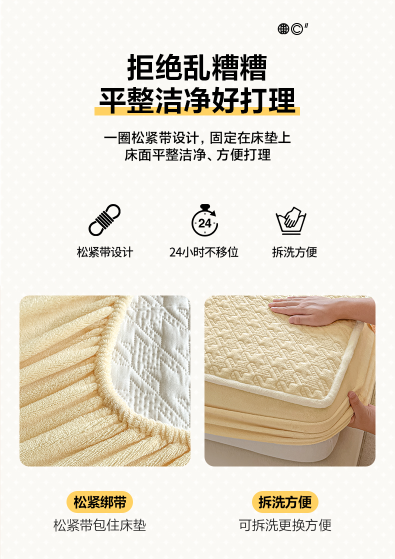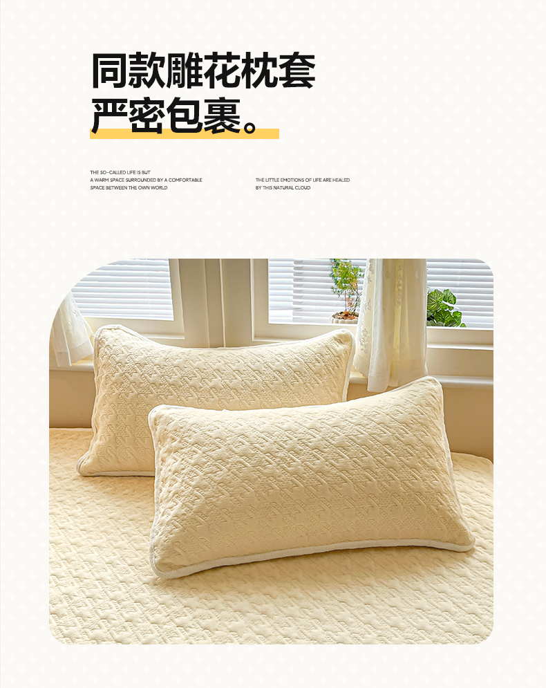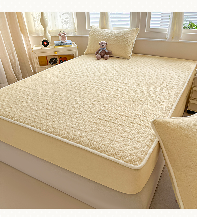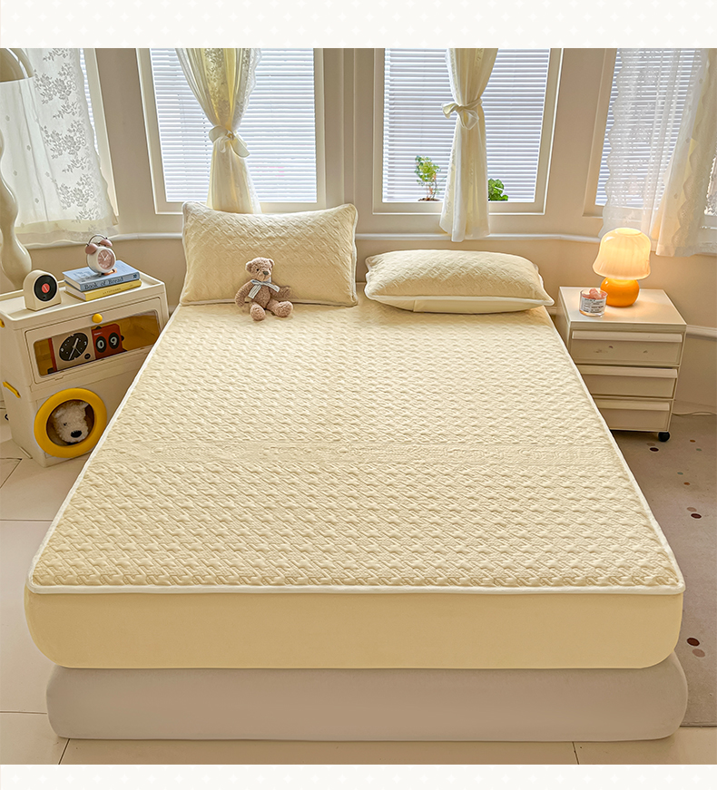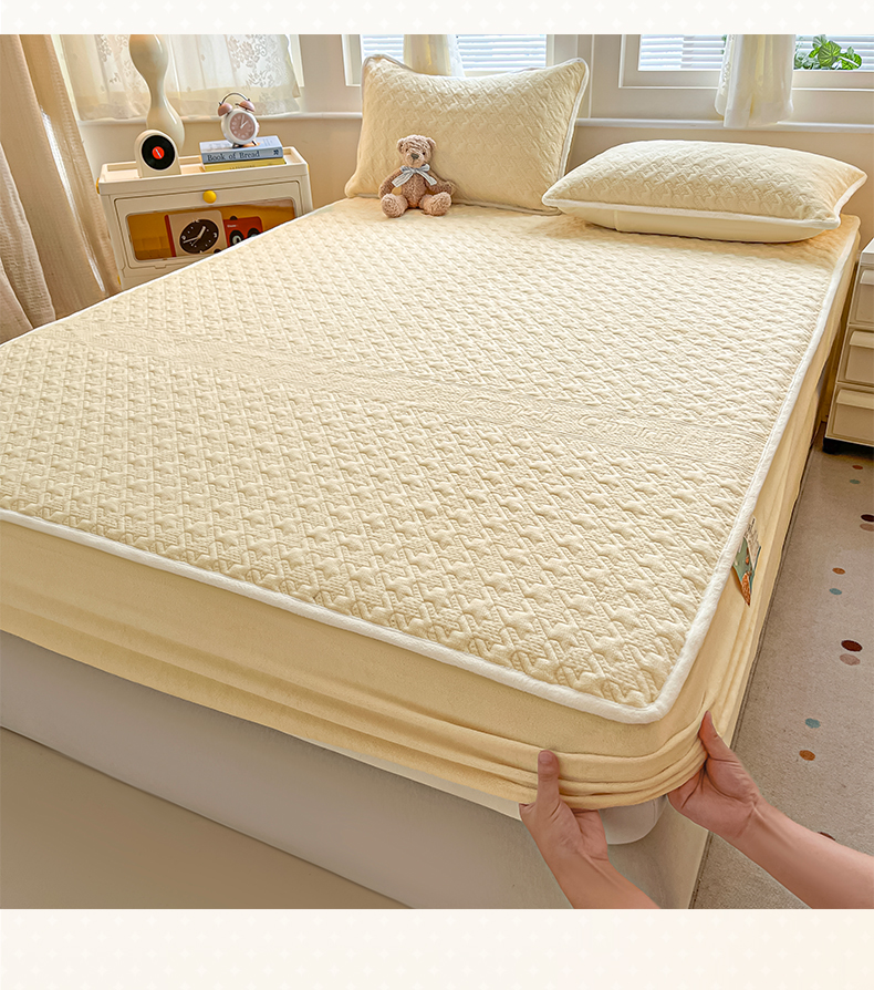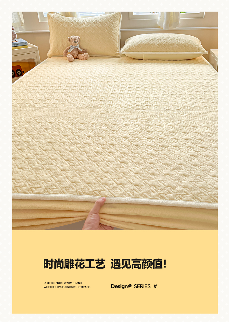 • 91家纺网 家纺一手货源 找家纺 卡伦家纺 2025新款抗菌雕花牛奶绒千鸟格夹棉床笠系列 千鸟格床笠-黄